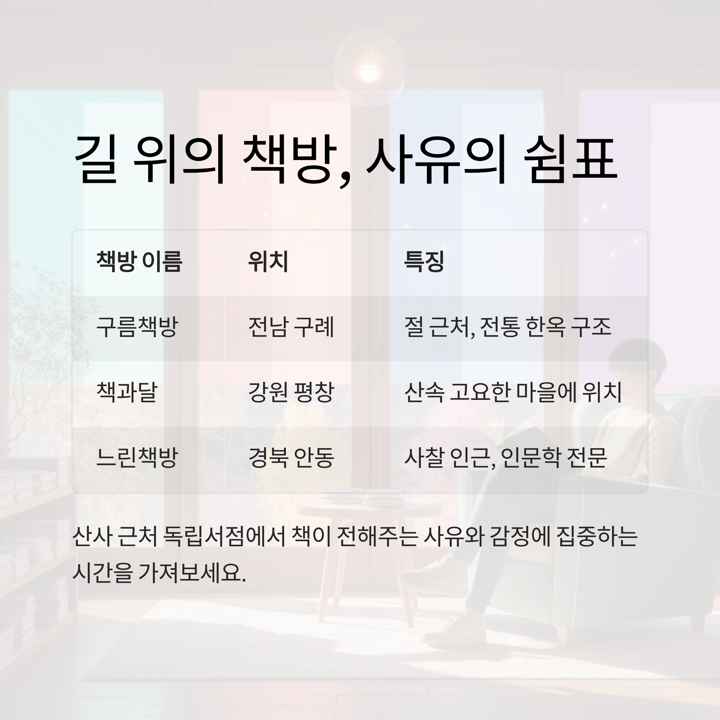 산사 근처, 또는 작은 마을 어귀에 숨듯 자리한 독립서점이나 북카페는