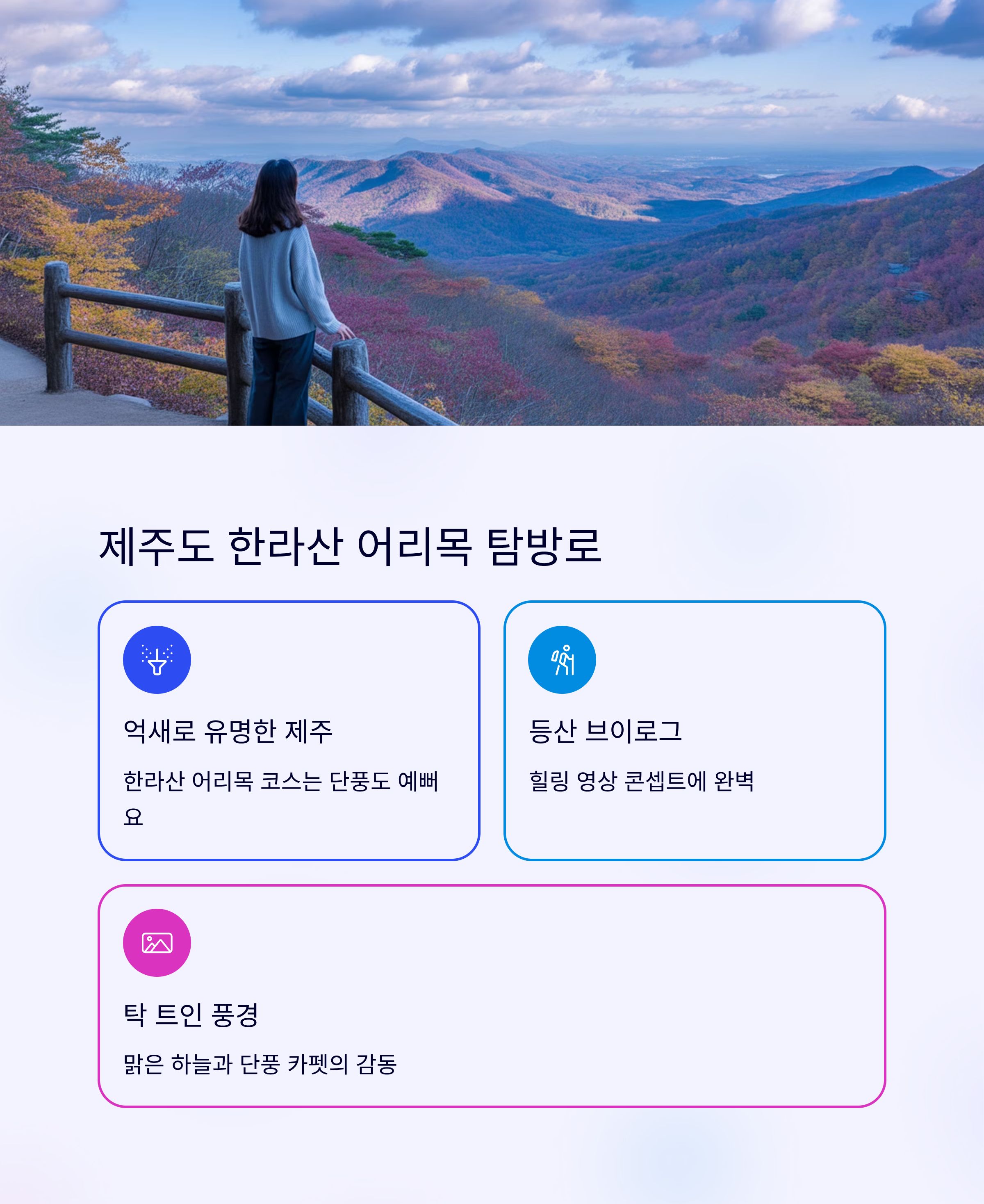 제주는 단풍보다 억새로 유명하지만, 한라산 어리목 코스는 붉게 물든 단풍도 꽤 예뻐요.