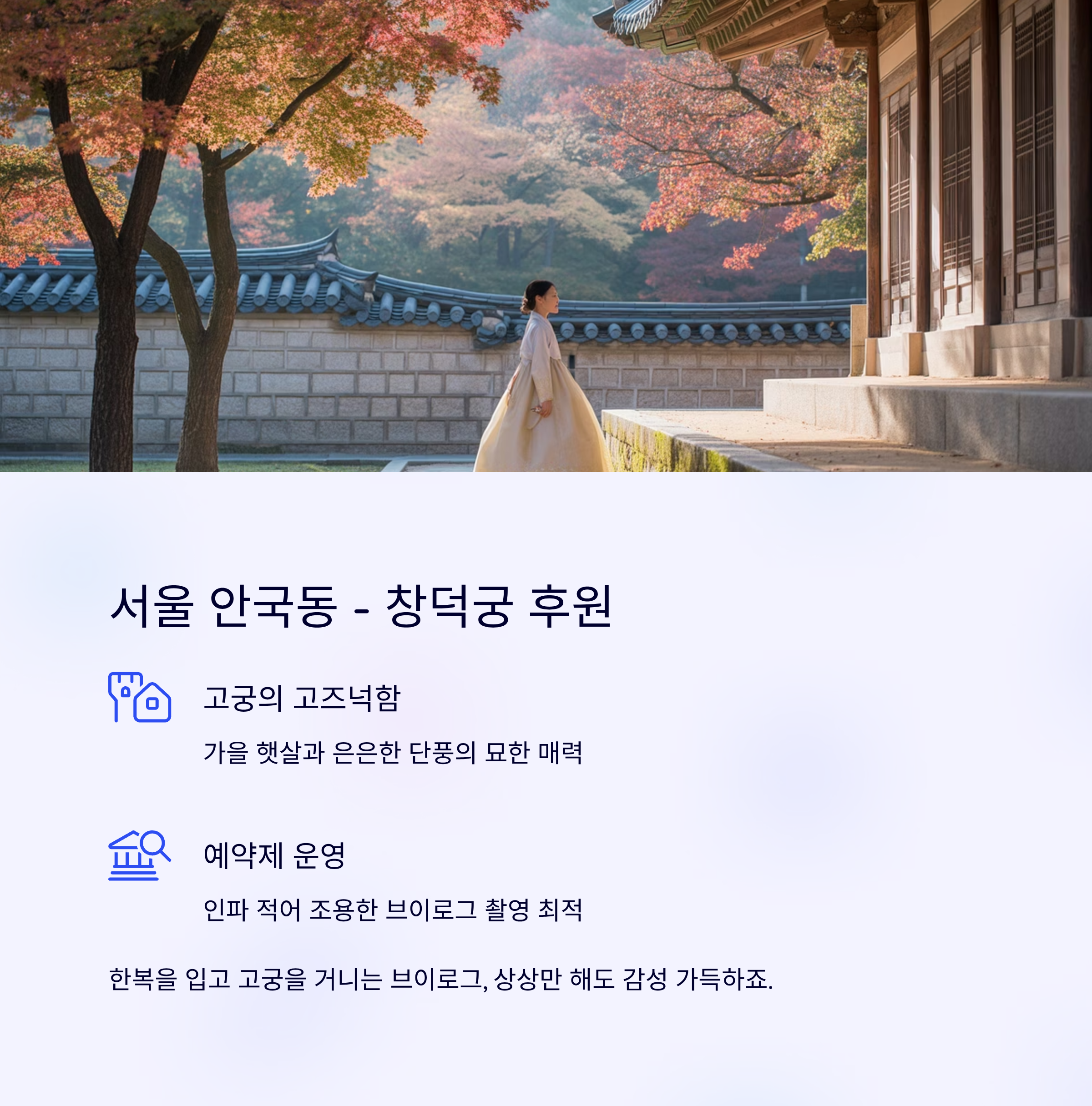 한복을 입고 고궁을 거니는 브이로그, 상상만 해도 감성 가득하죠.