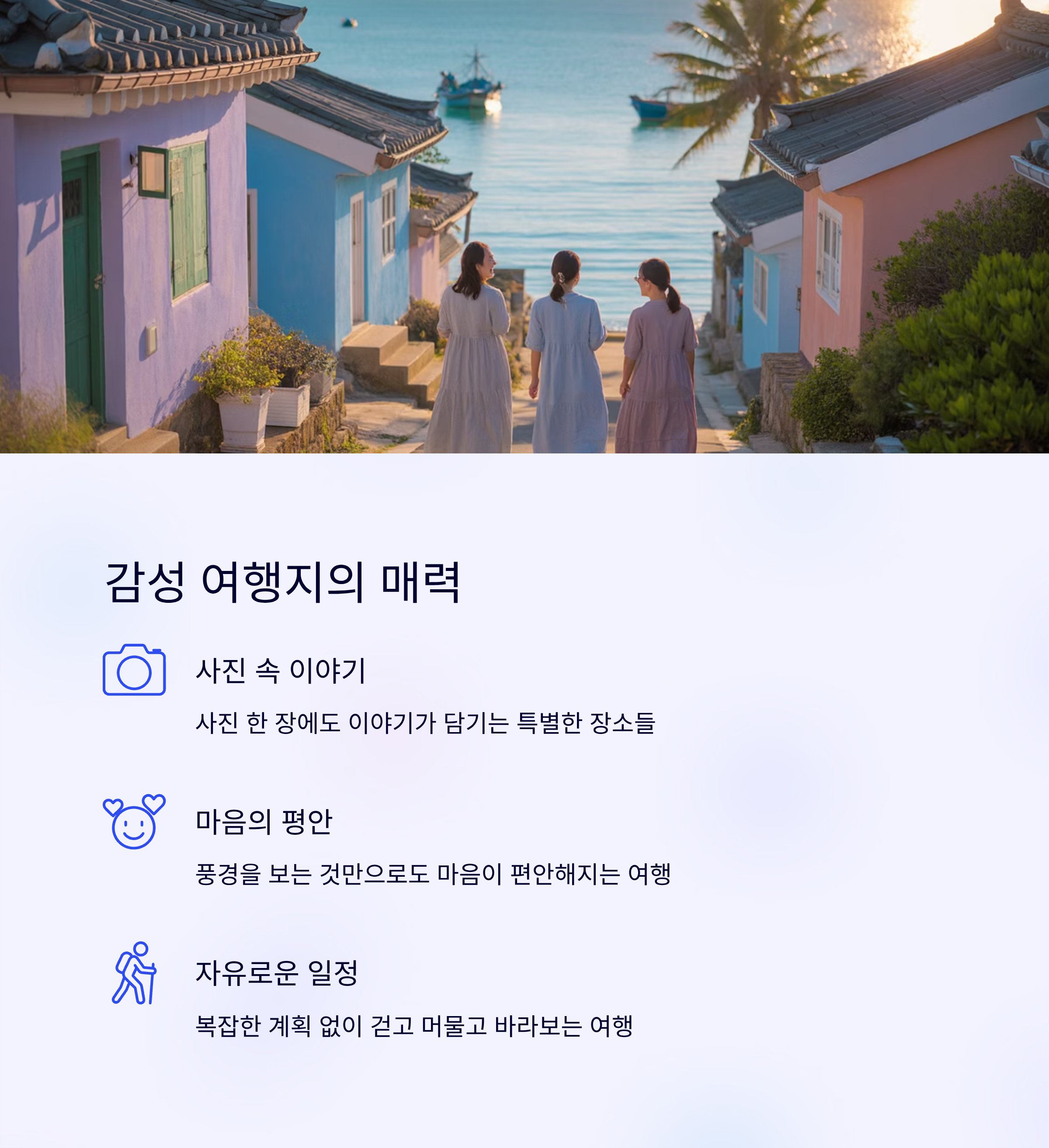 사진 한 장에도 이야기가 담기는 곳. 감성 여행지란 바로 그런 장소입니다.