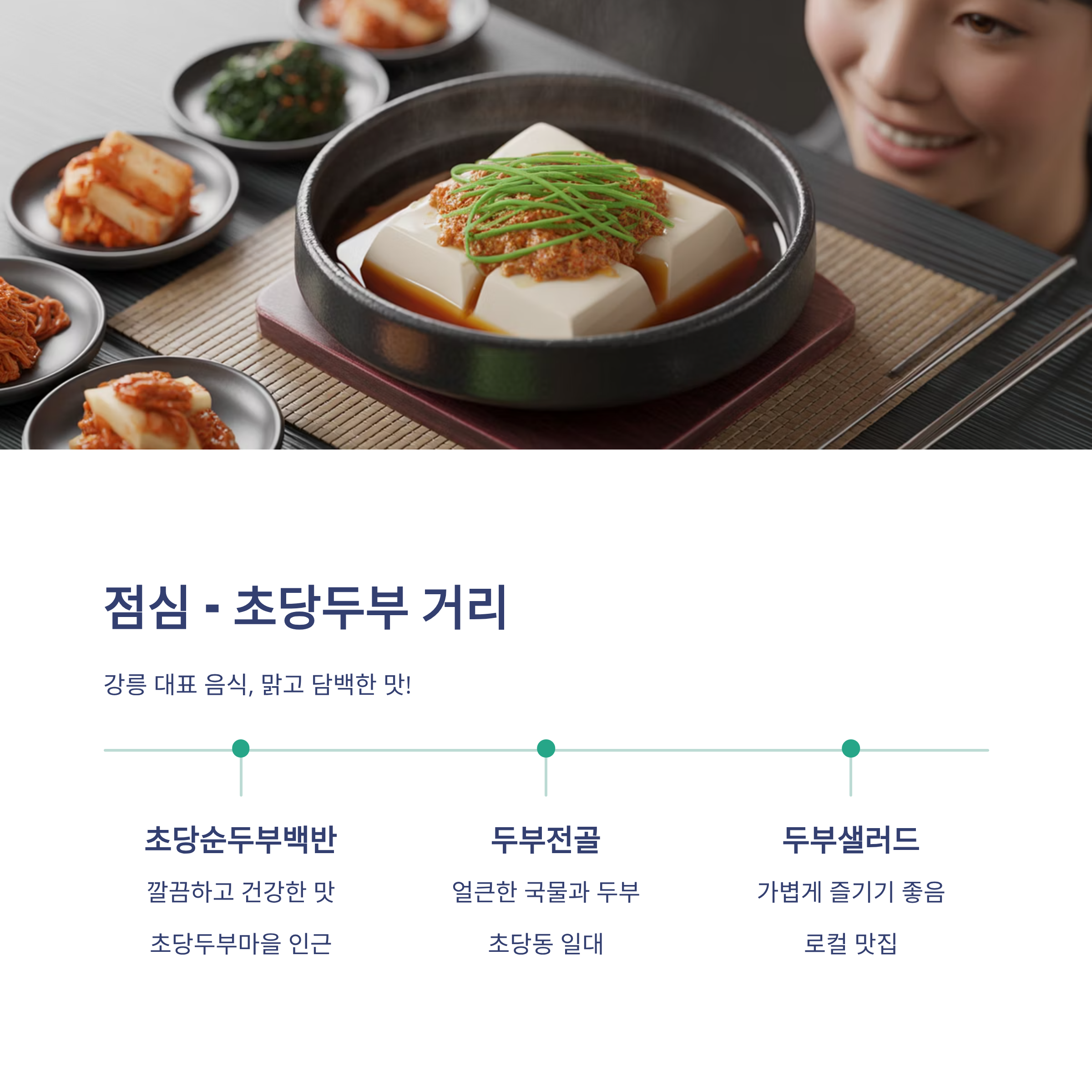 | 초당순두부백반 | 깔끔하고 건강한 맛 | 초당두부마을 인근 |