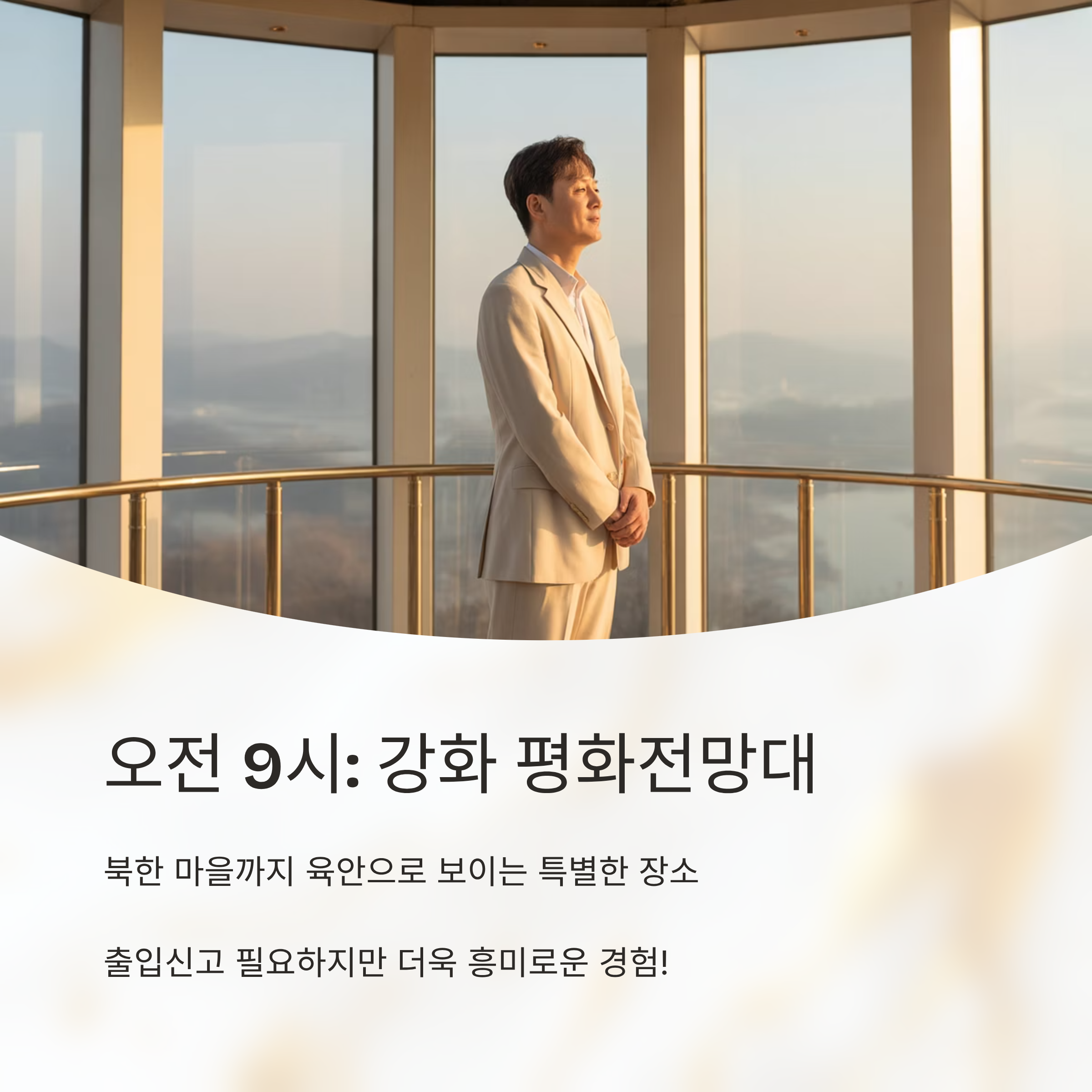 | 오전 9시 | 강화 평화전망대 | 전망 감상 및 사진 촬영 |