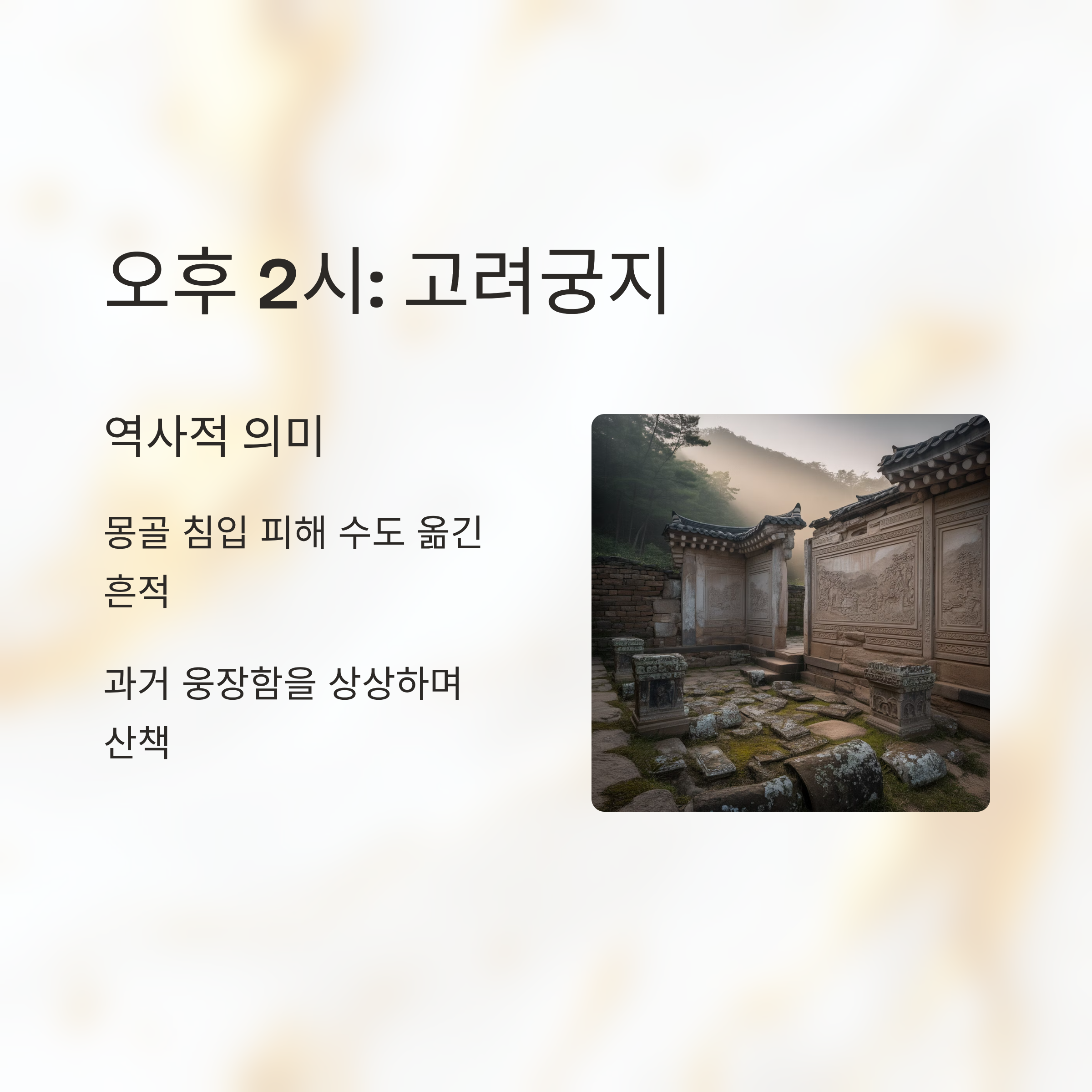 | 오후 2시 | 고려궁지 | 유적지 산책 |