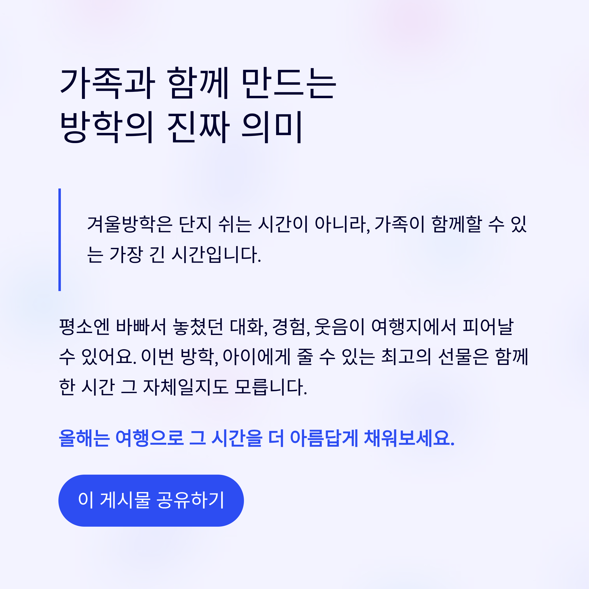 겨울방학은 단지 쉬는 시간이 아니라, 가족이 함께할 수 있는 가장 긴 시간입니다.