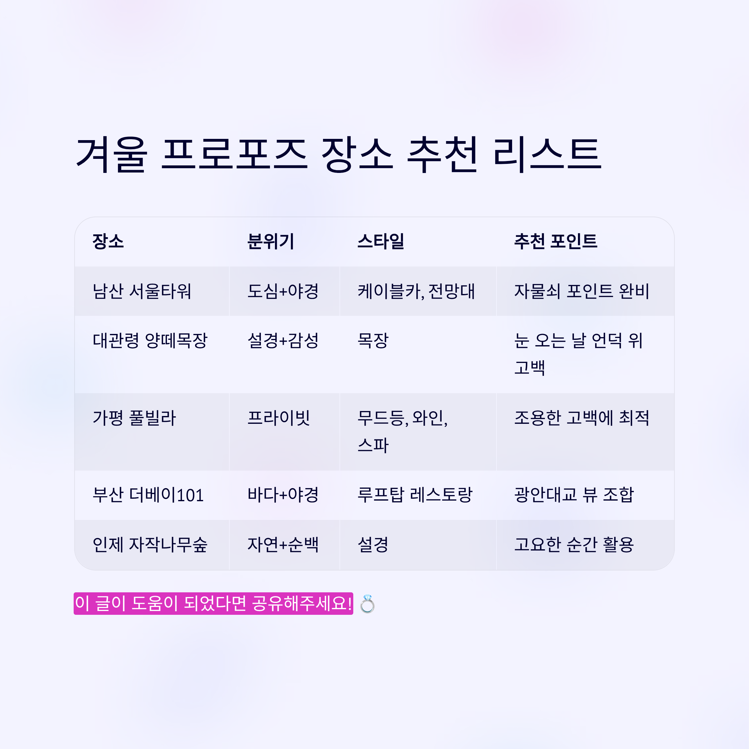 겨울 프로포즈 장소 추천 리스트