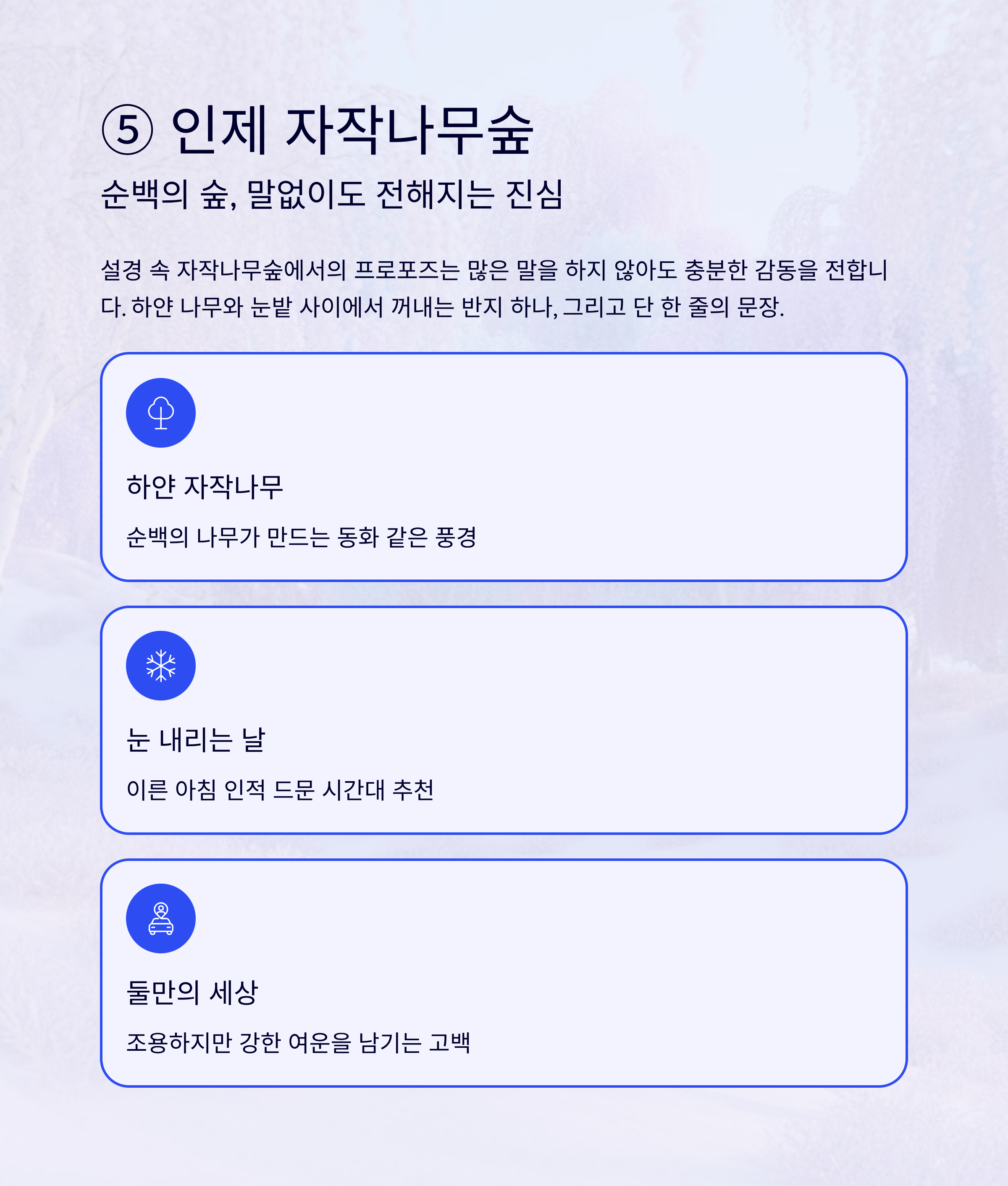 ⑤ 인제 자작나무숲 – 순백의 숲, 말없이도 전해지는 진심
