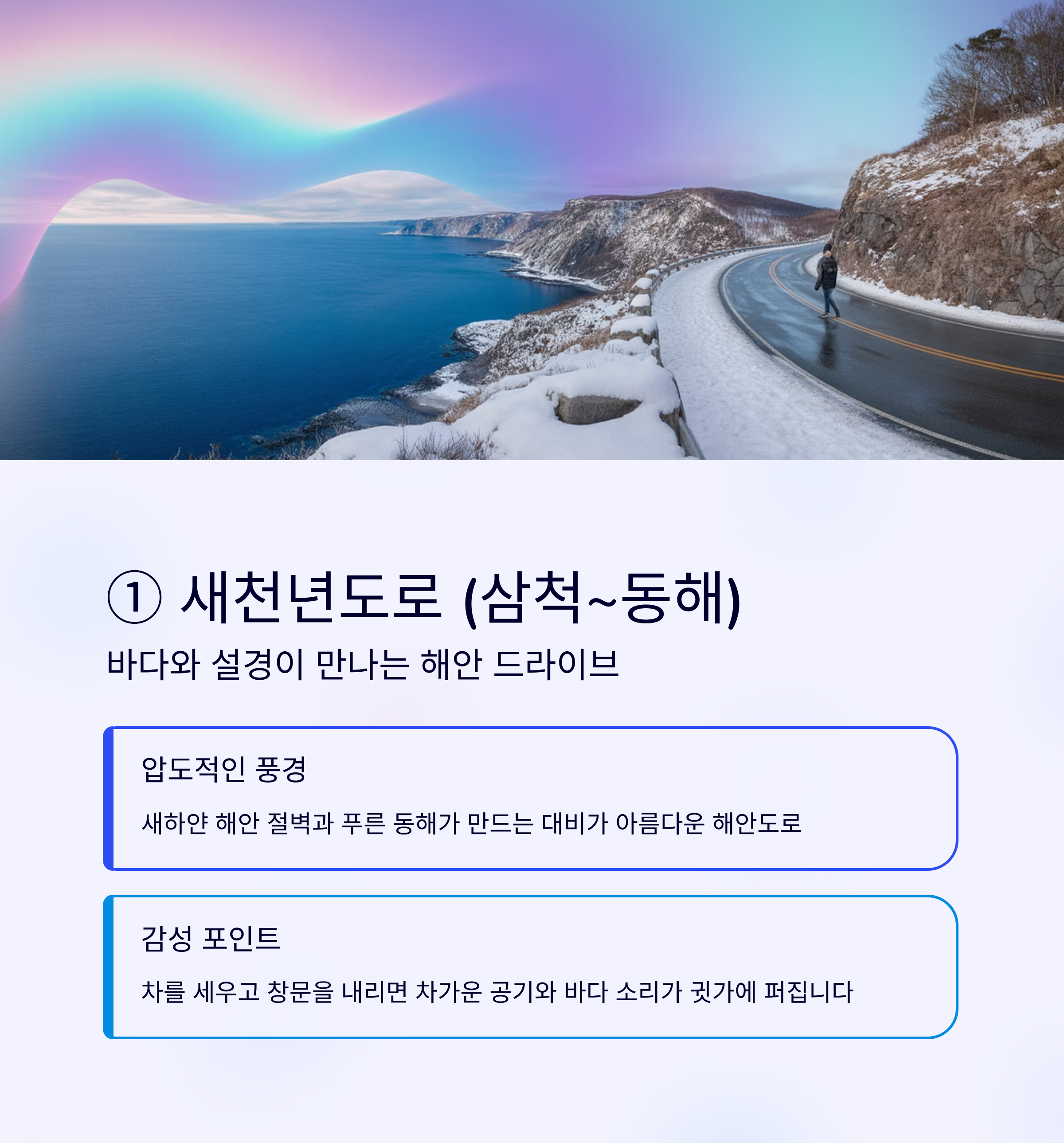 ① 새천년도로(삼척~동해) – 바다와 설경이 만나는 해안 드라이브