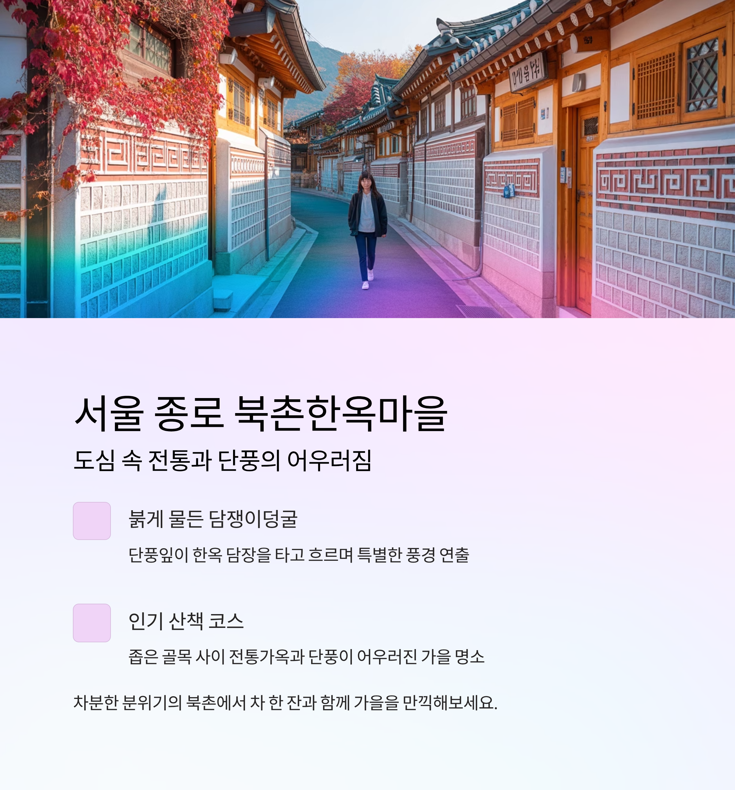 서울 종로 북촌한옥마을 – 도심 속 전통과 단풍의 어우러짐
