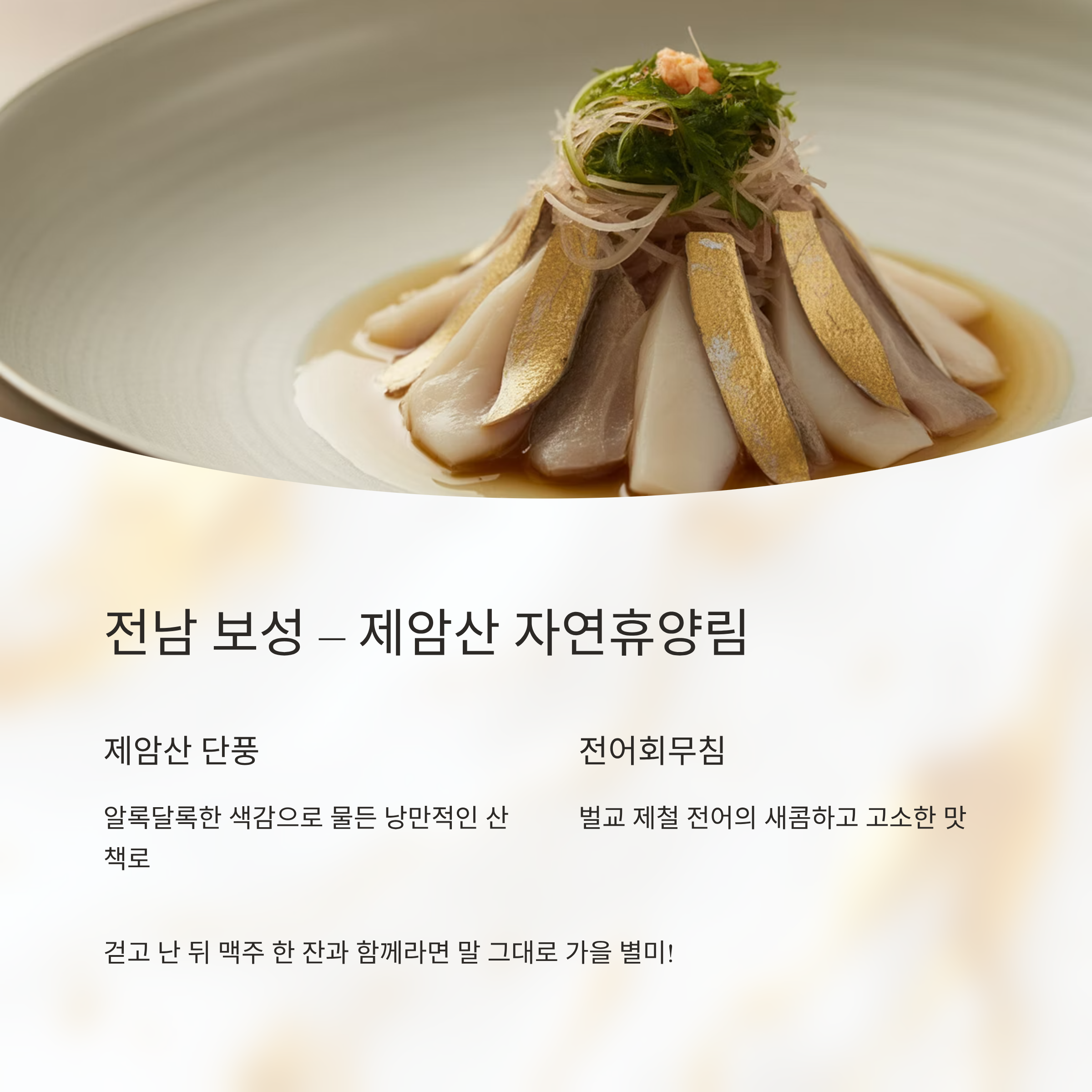 | 전남 보성 | 제암산 단풍길 | 전어 | 전어회무침, 전어구이 |