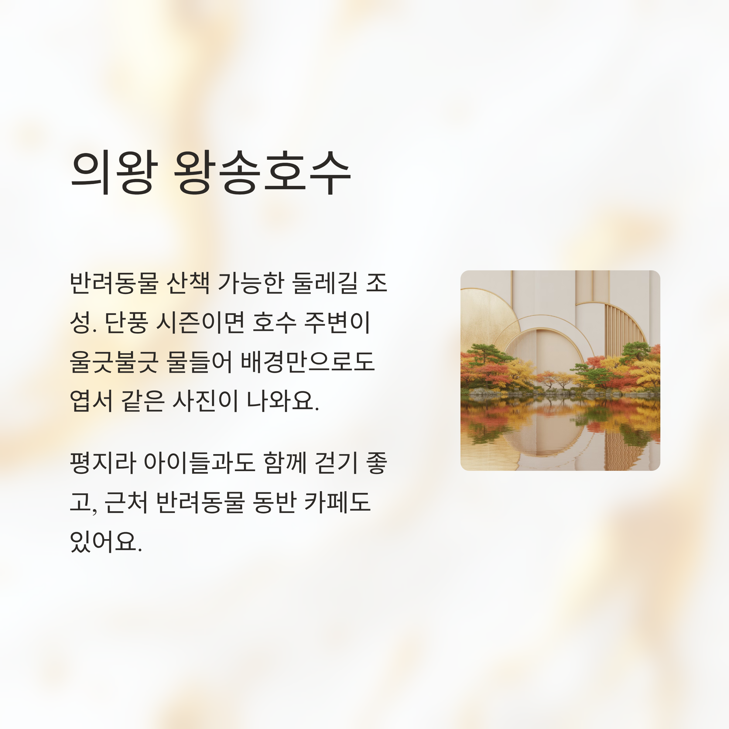 | 경기 | 의왕 왕송호수 | 호수뷰와 단풍 산책로 |