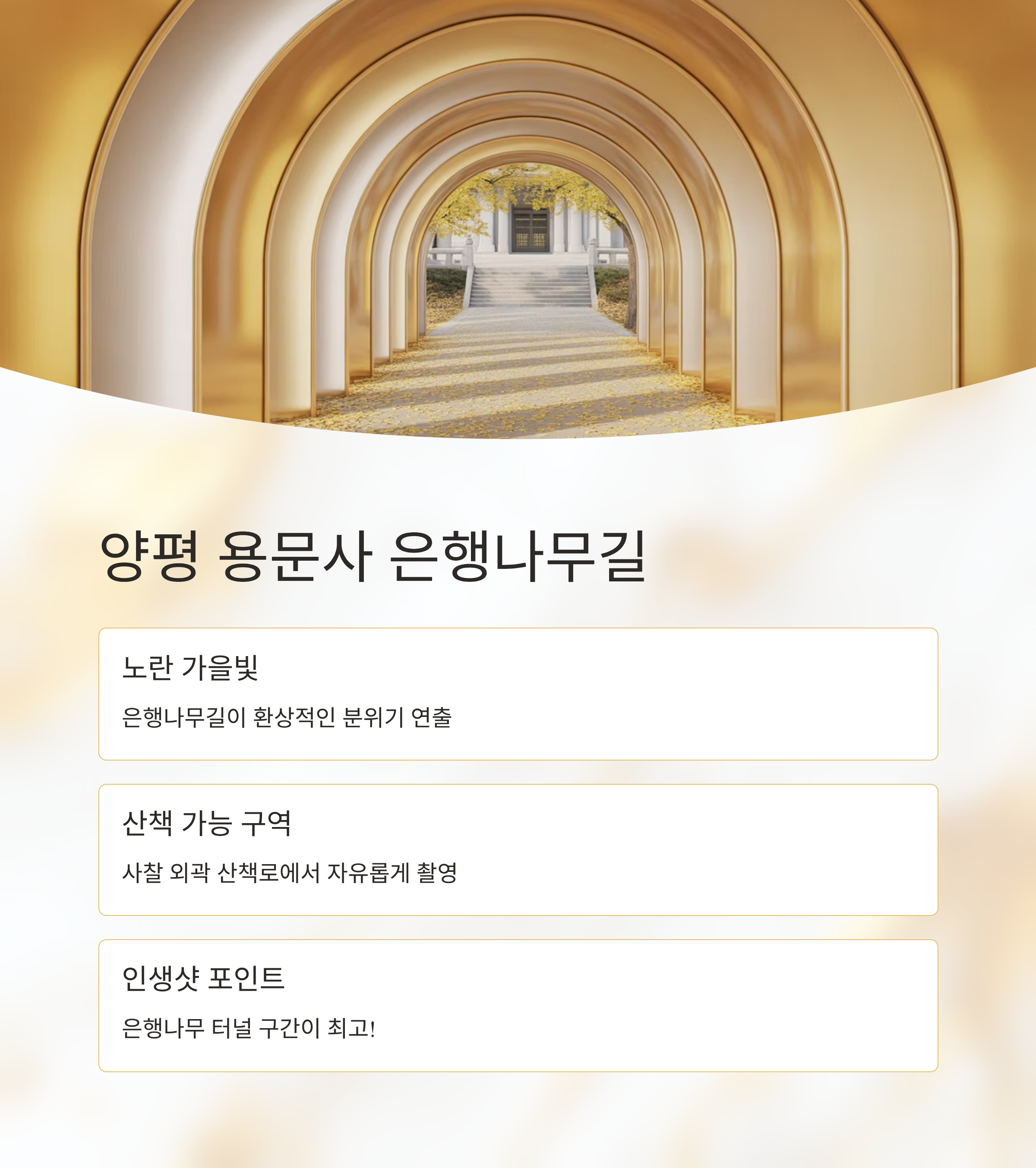 | 경기 | 용문사 은행나무길 | 노란 은행나무 배경 인생샷 |