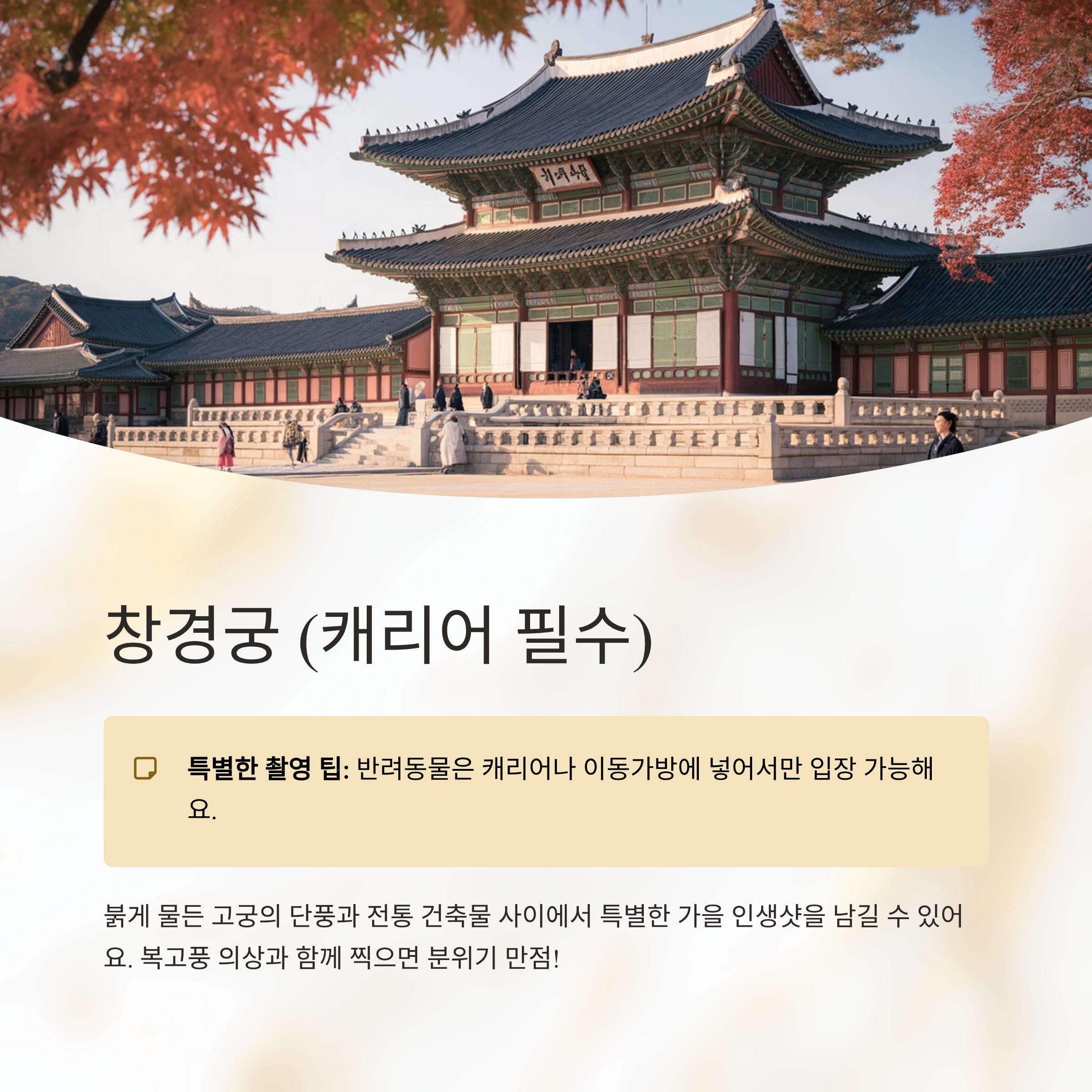 | 서울 | 창경궁 | 고궁 단풍 배경, 캐리어 입장 |