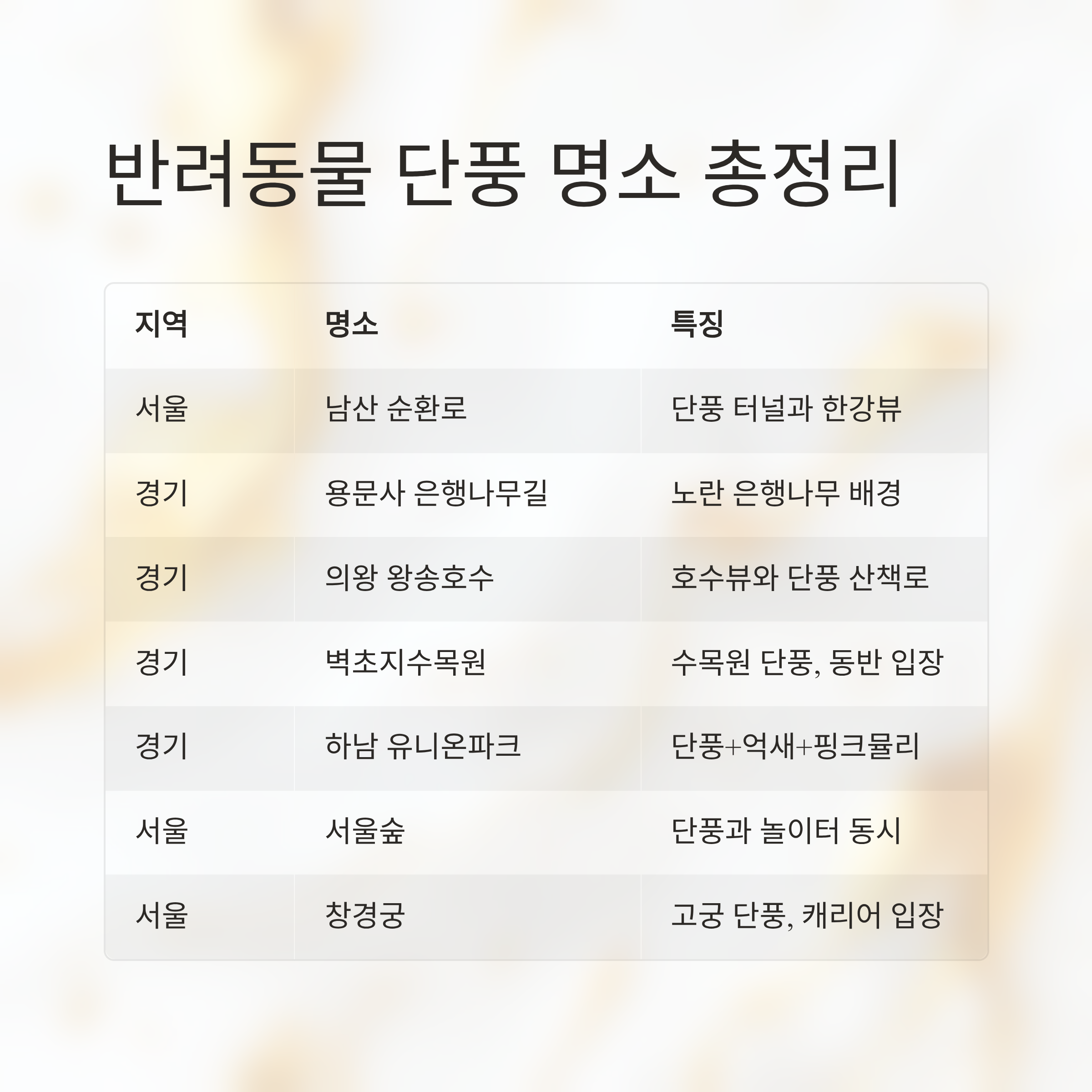 반려동물과 단풍 인생샷 명소 요약표