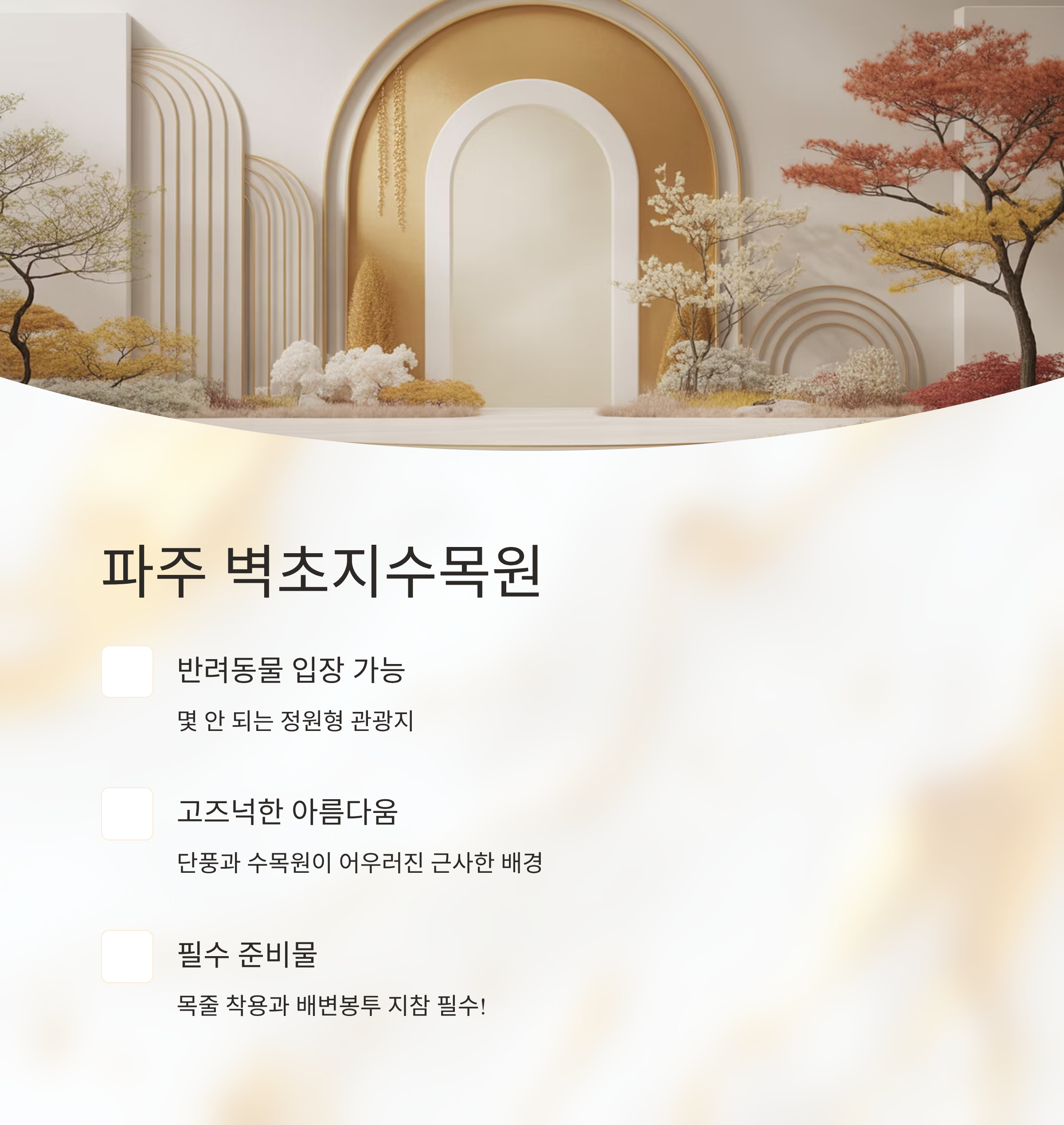 | 경기 | 벽초지수목원 | 수목원 단풍 + 동반 입장 가능 |