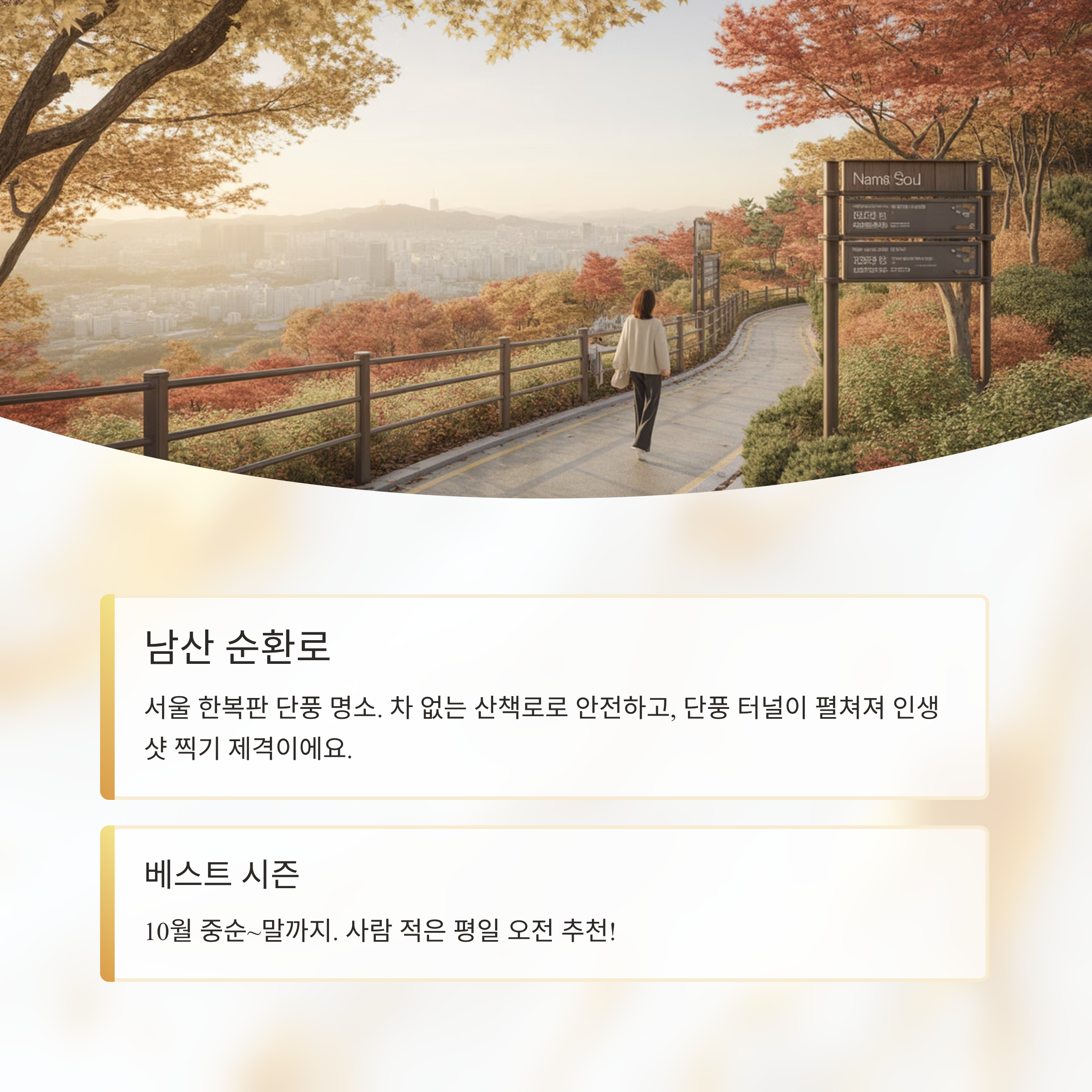 | 서울 | 남산 순환로 | 단풍 터널과 한강뷰 포토존 |