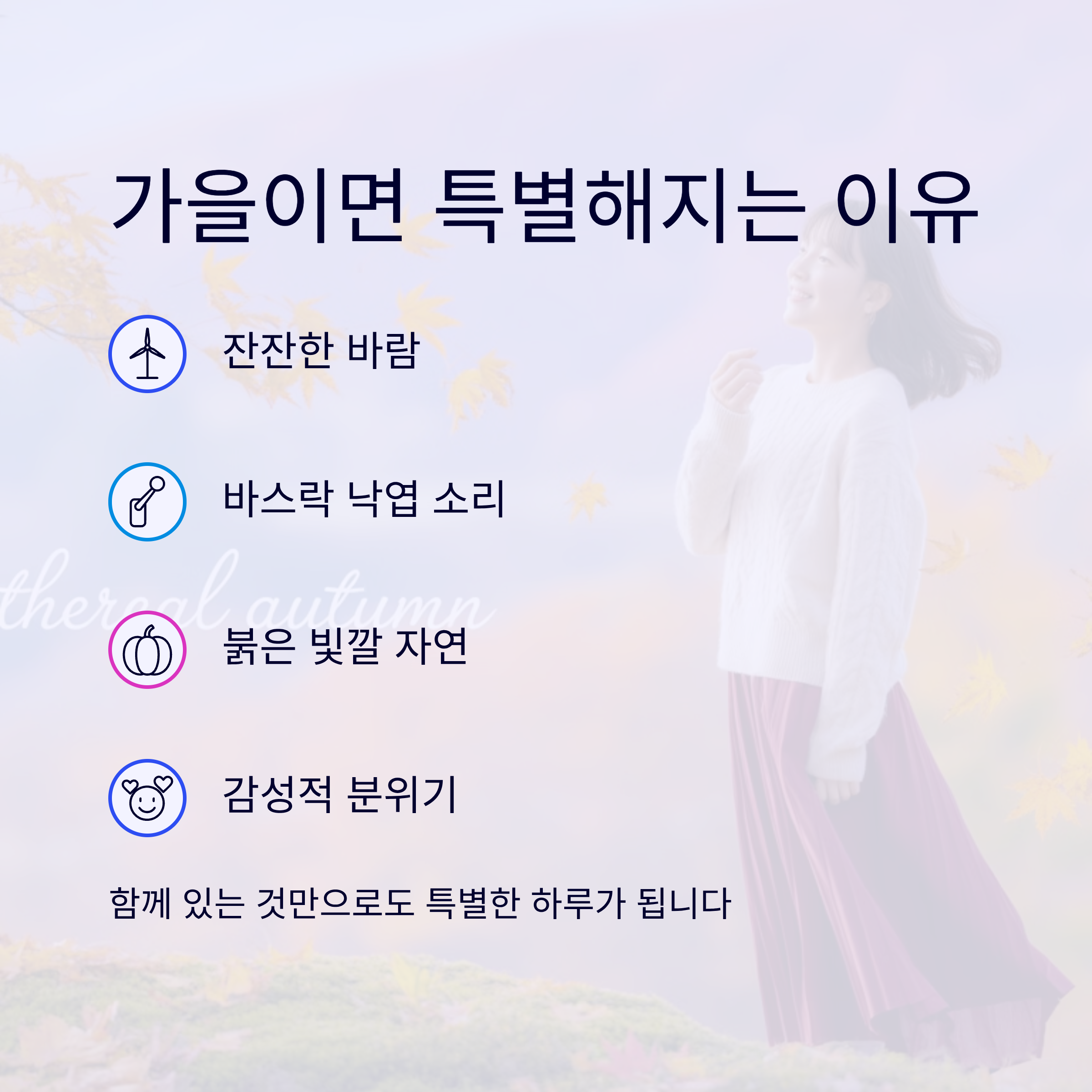 집에 돌아가는 길, 문득 생각나는 찻집의 온기나 손에 쥔 낙엽 하나만으로도 오늘 하루가 오래 기억에 남게 돼요.