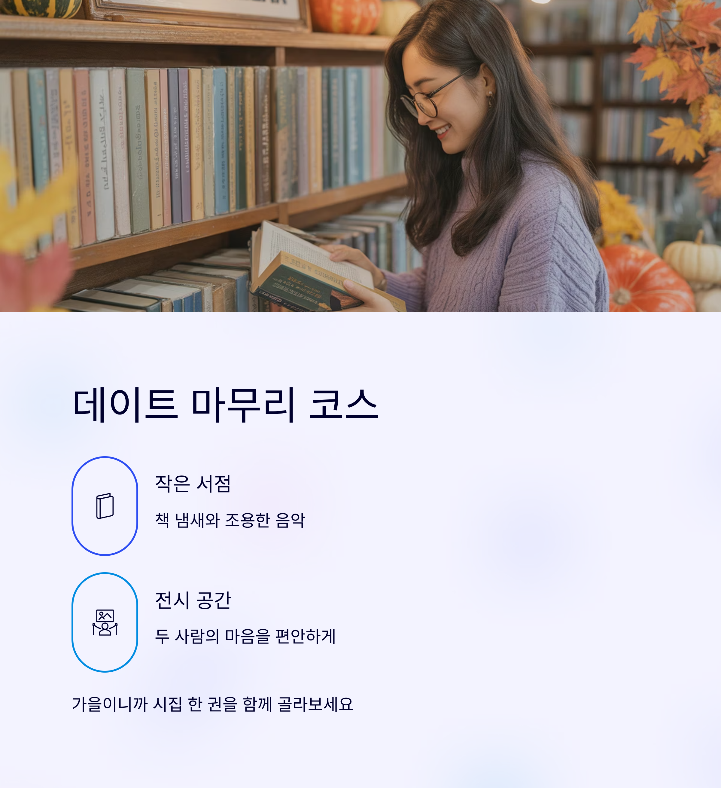 데이트 마무리는 산책길 끝 작은 서점이나 전시회