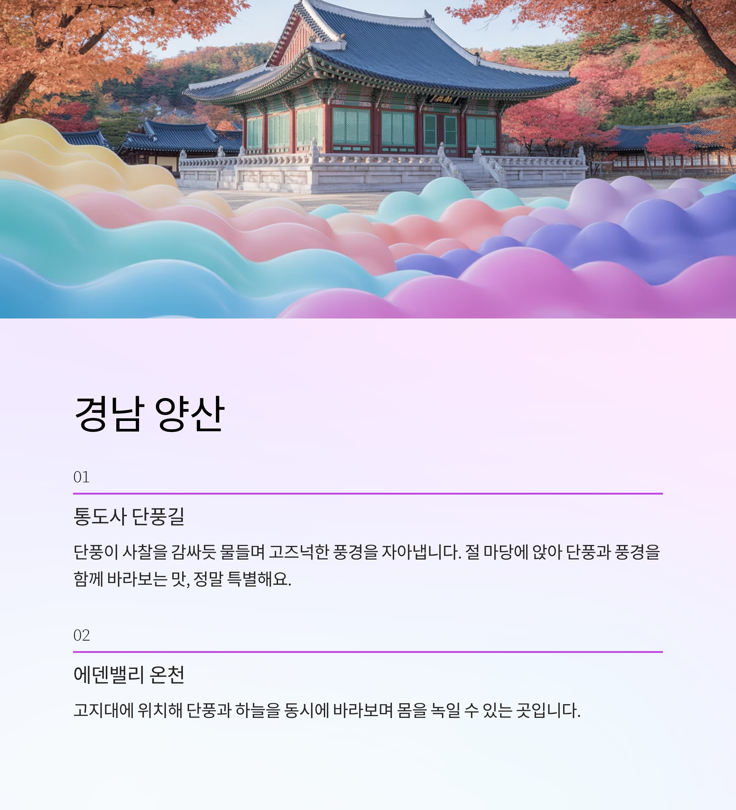 2025.10.22 - [분류 전체보기] - 지루할 틈 없는 단풍길, 체험까지 즐기는 가을 여행지