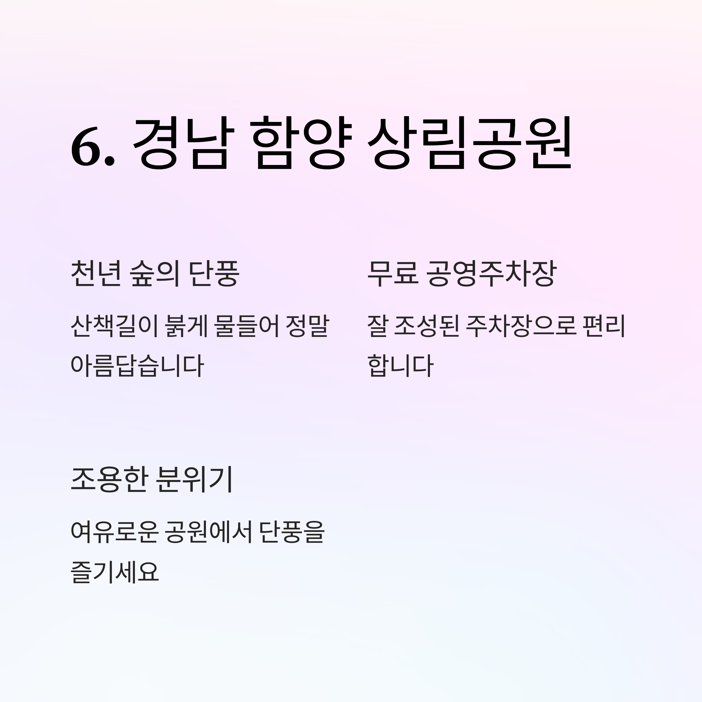 | 경남 함양 | 상림공원 | 넉넉한 무료 주차장 | 조용하고 여유로운 단풍 산책 코스 |