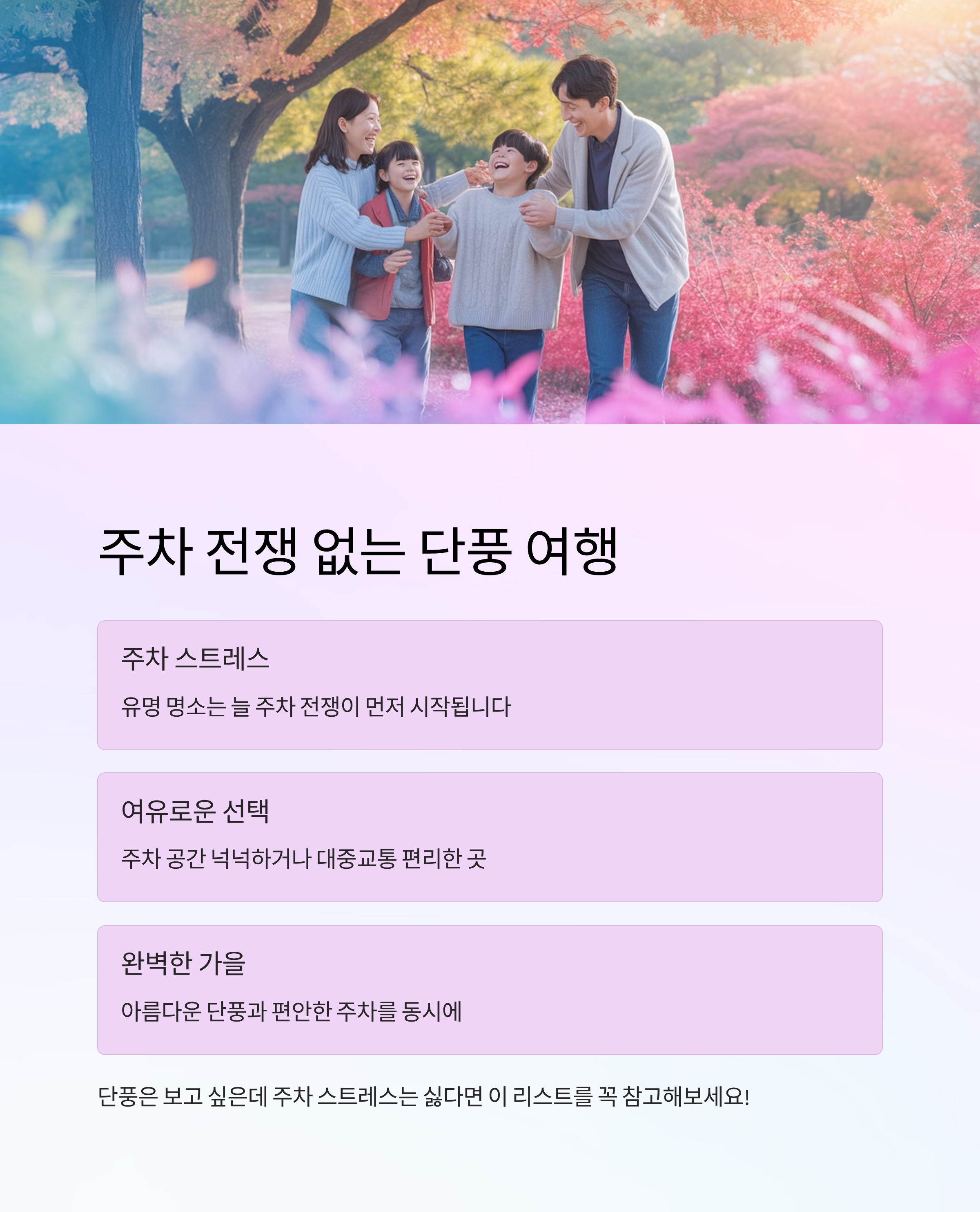 단풍철, 주차 걱정 없는 명소 요약