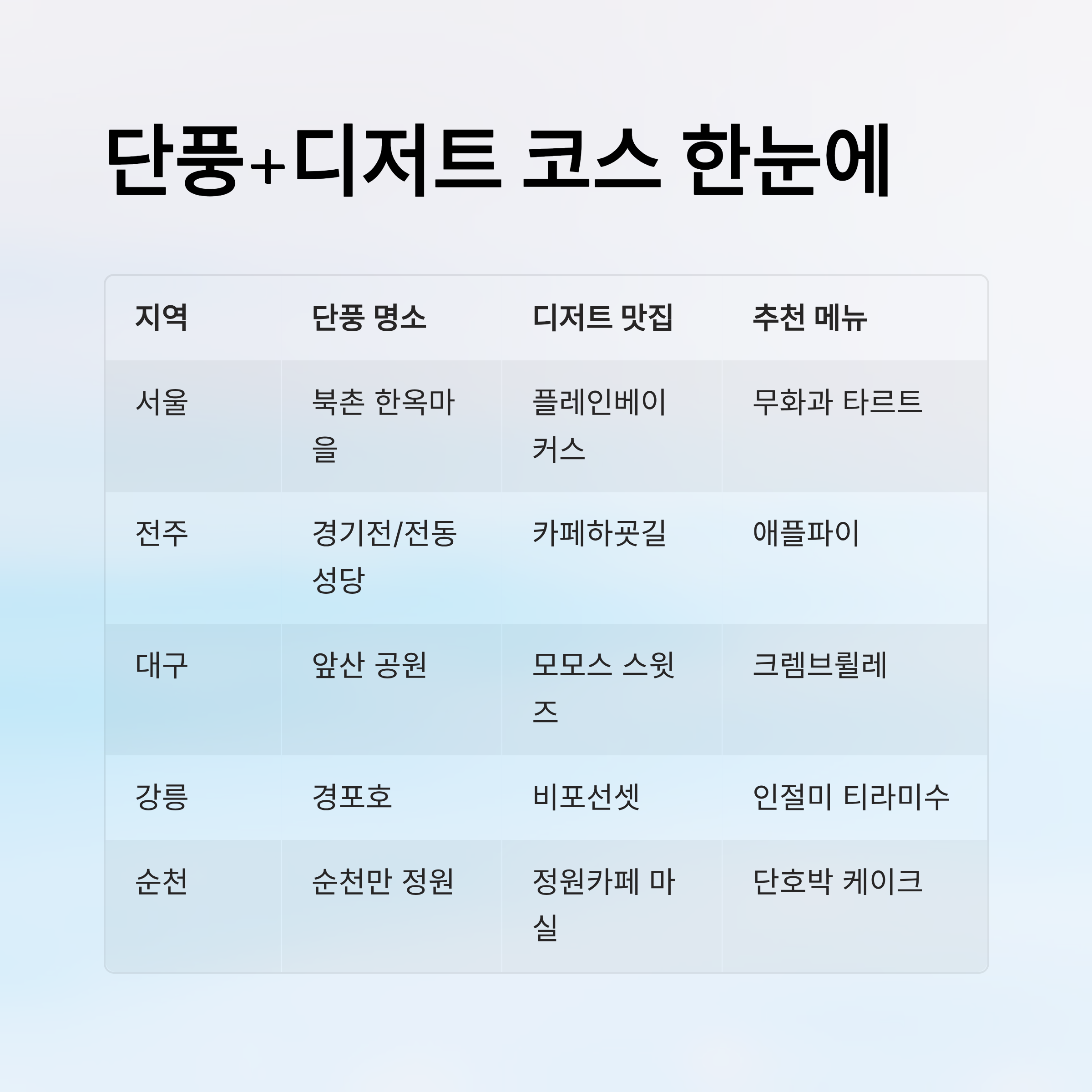 지역 단풍 명소 디저트 맛집 추천 메뉴