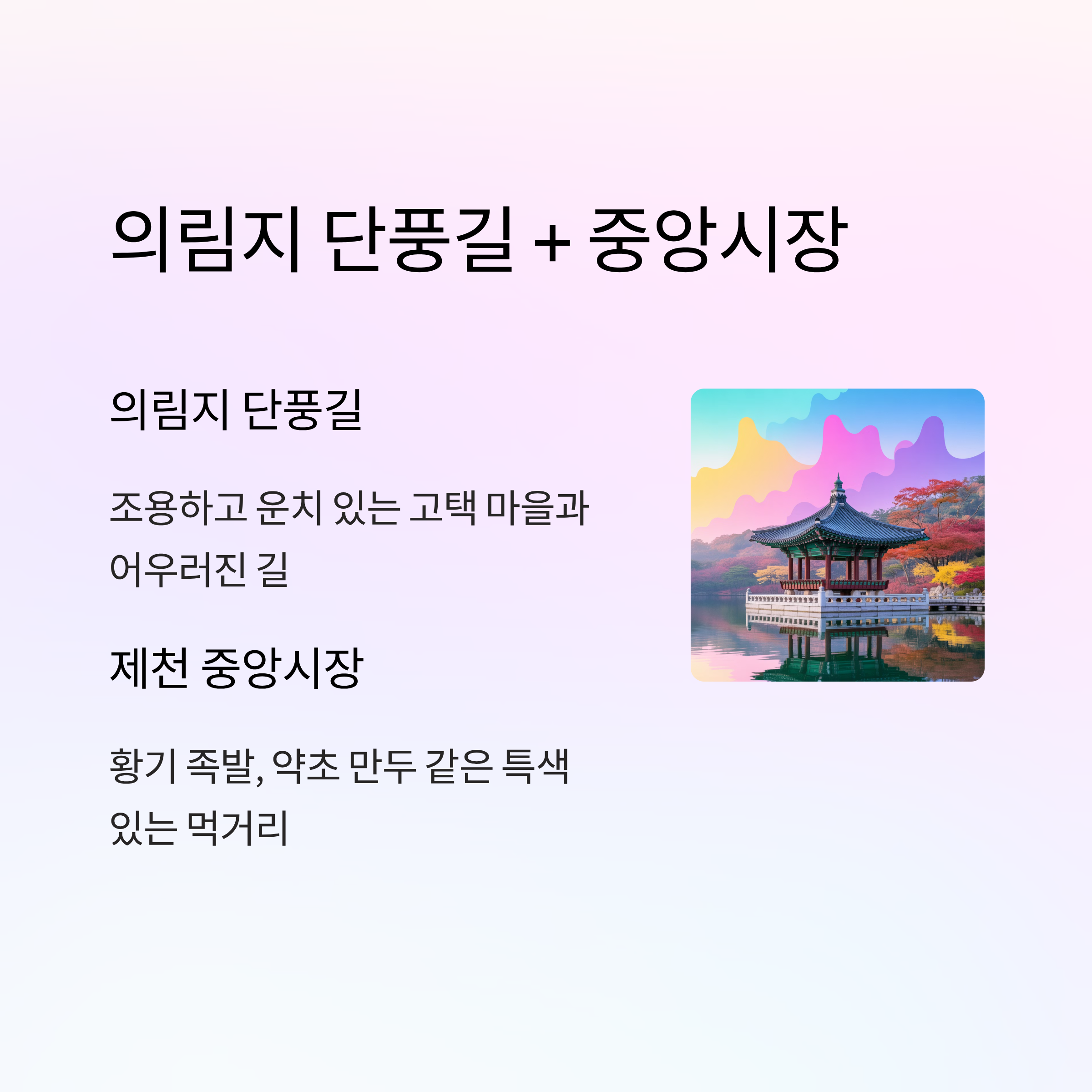 6. 충북 제천 의림지 단풍길 + 중앙시장