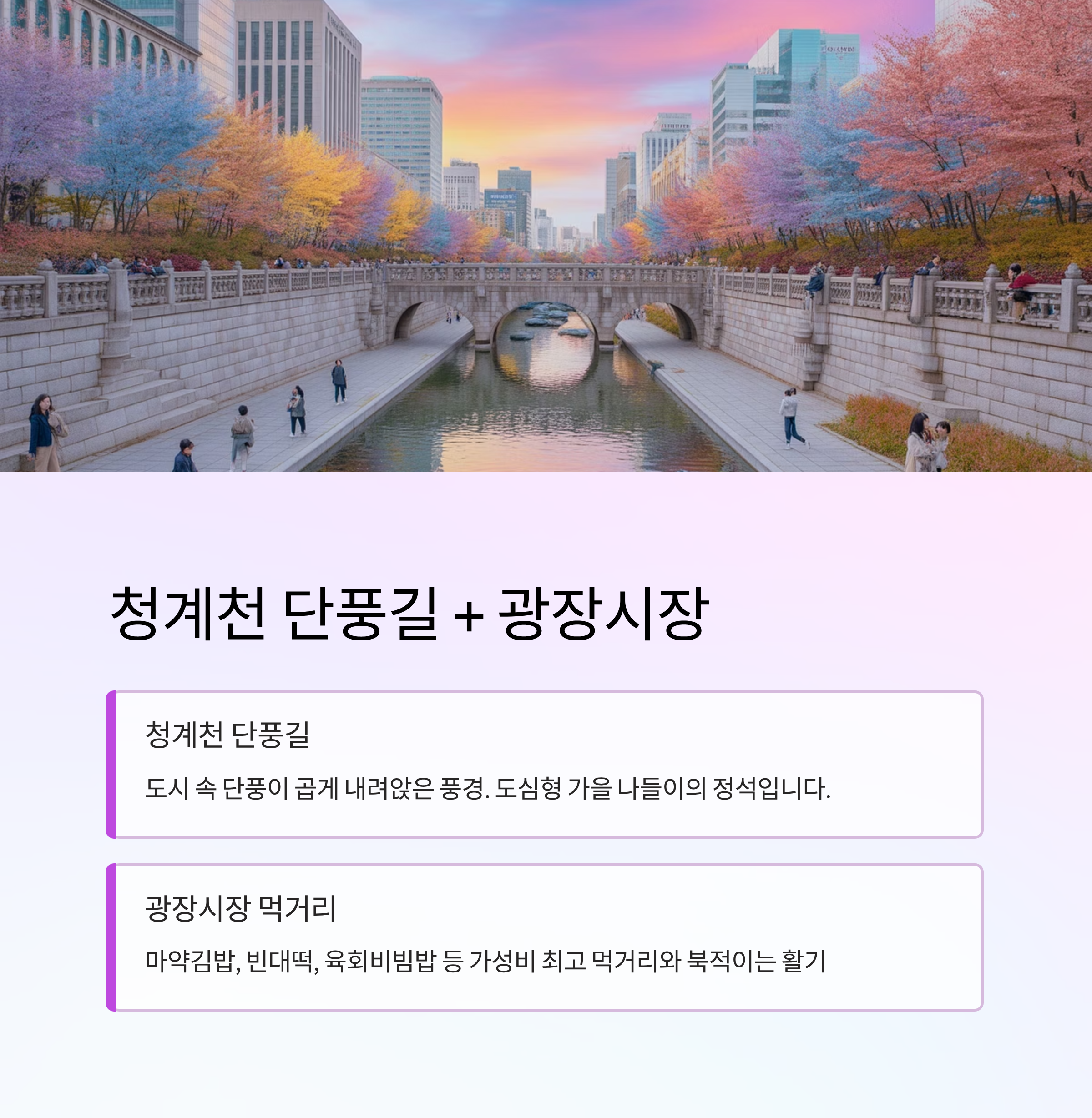 1. 서울 청계천 단풍길 + 광장시장