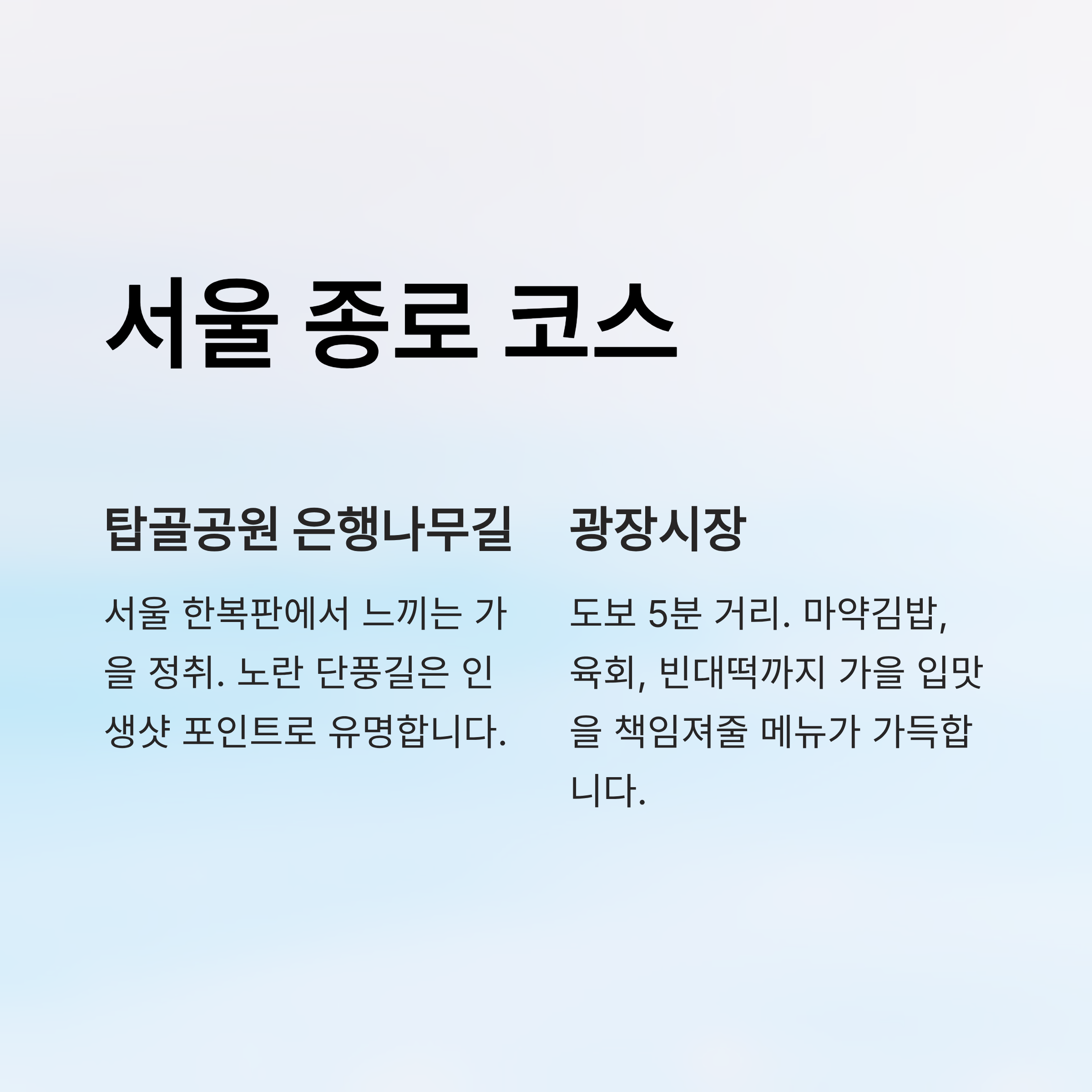 1. 서울 종로 – 탑골공원 단풍길 + 광장시장