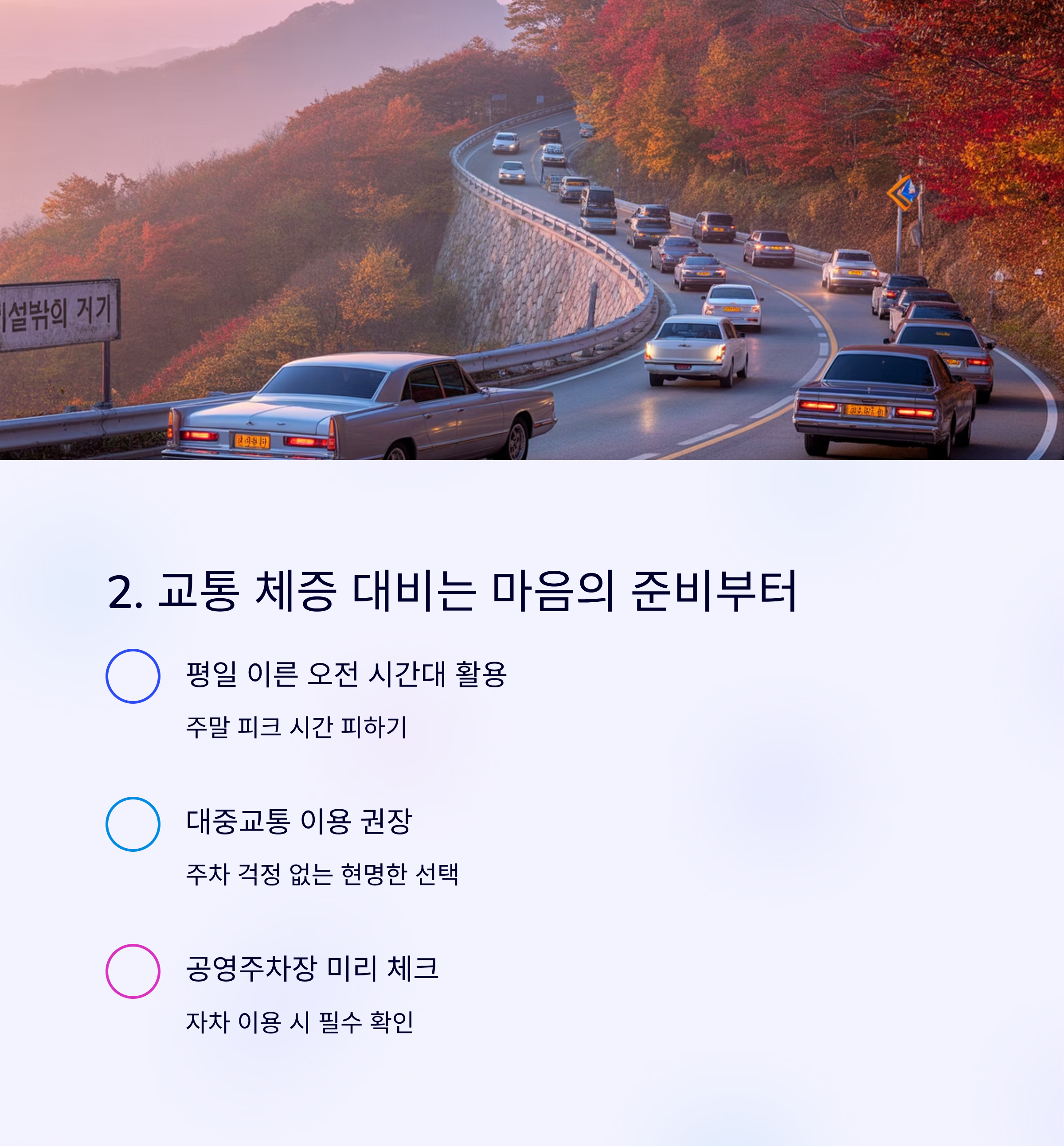 2. 교통 체증 대비는 마음의 준비부터