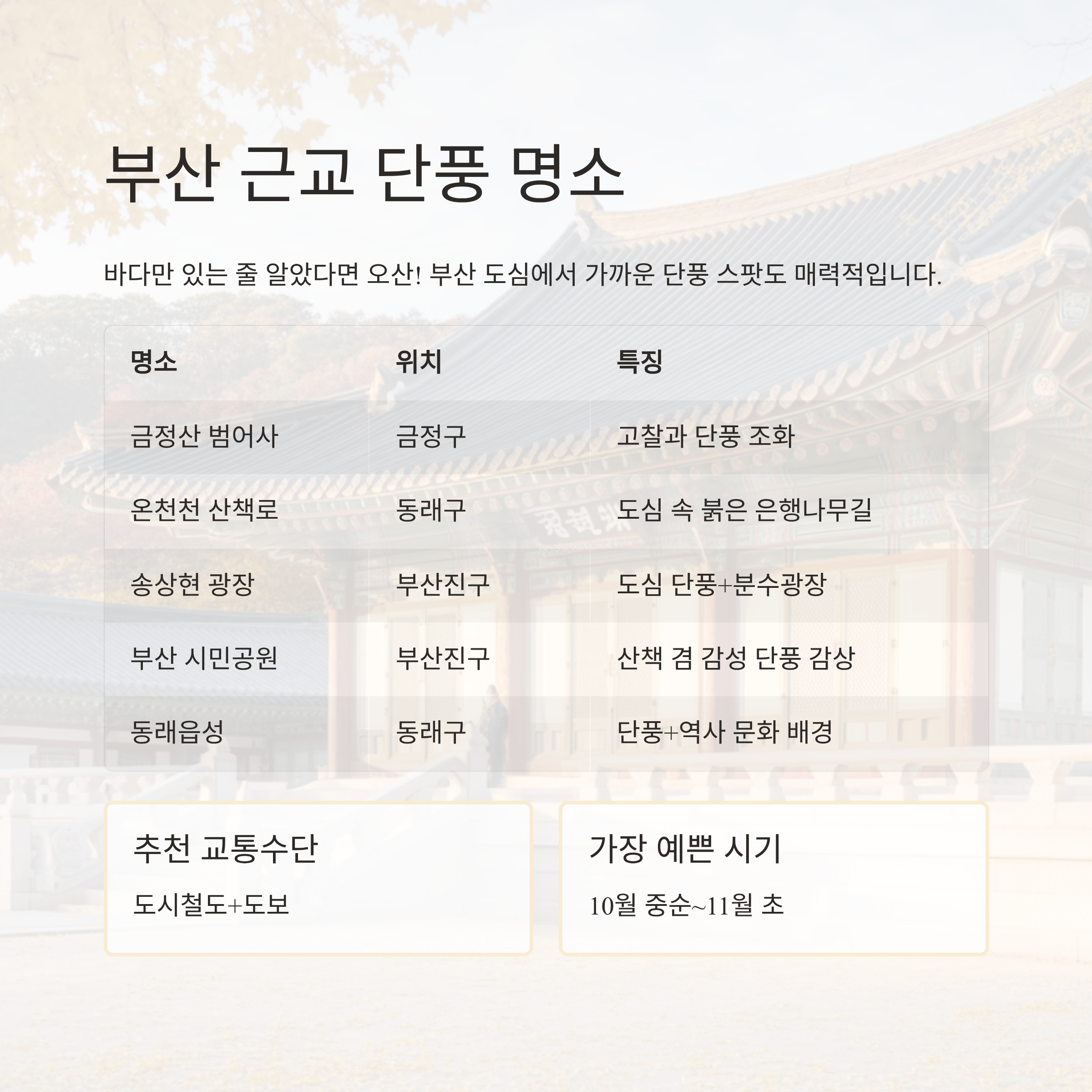 부산 도심에서 가까운 단풍 스팟도 매력적입니다.