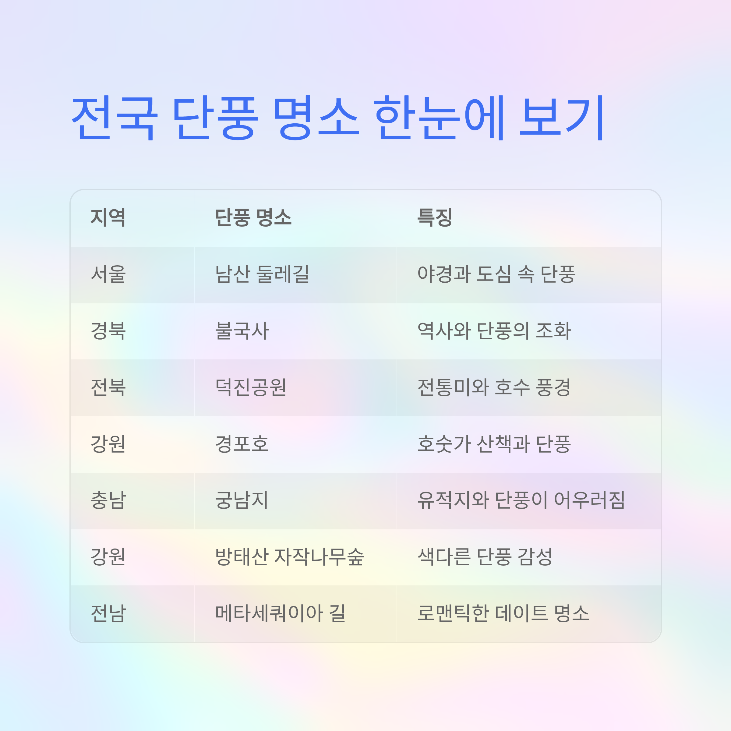 지역 단풍 명소 특징
