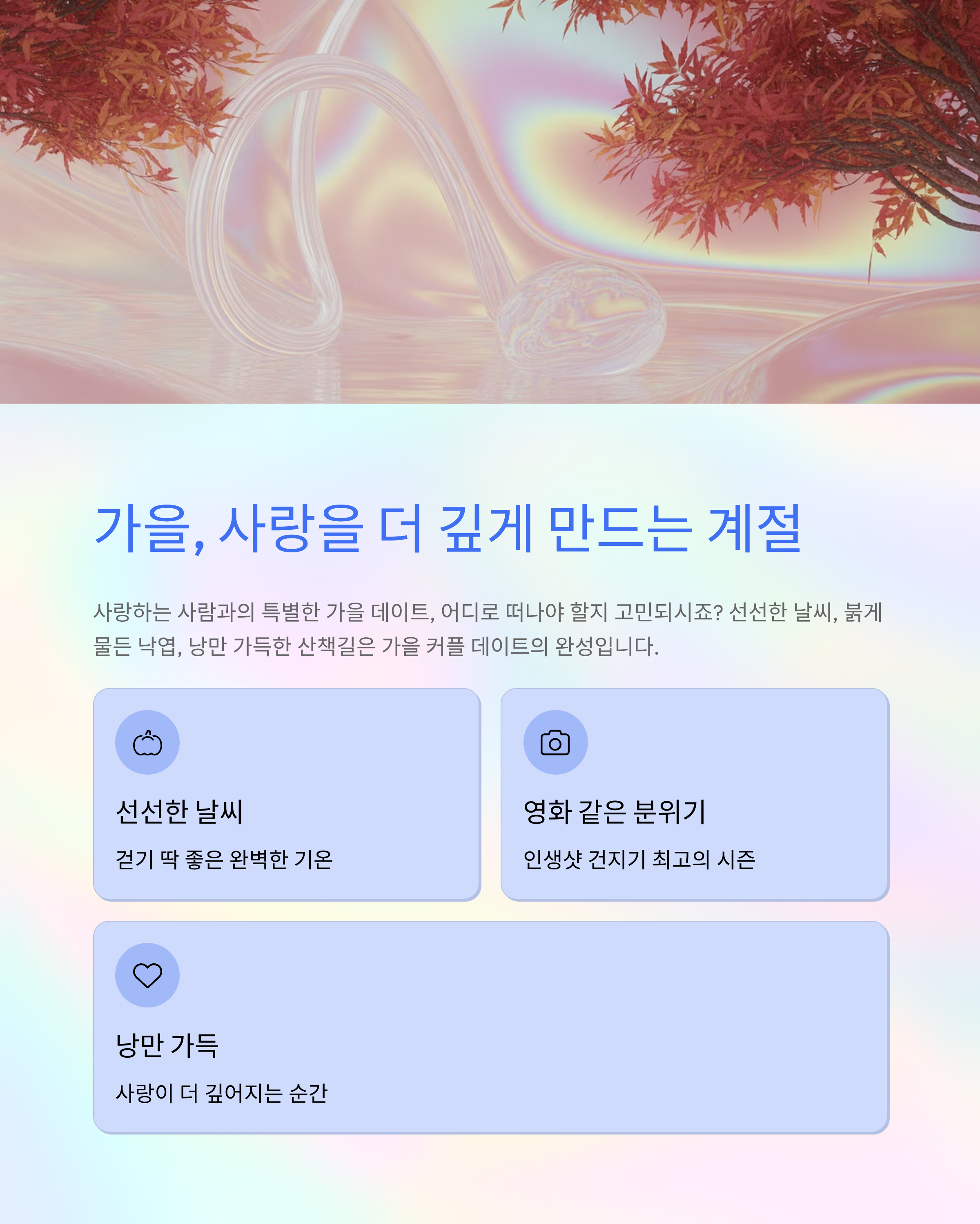 사랑하는 사람과의 특별한 가을 데이트, 어디로 떠나야 할지 고민되시죠? 선선한 날씨, 붉게 물든 낙엽, 낭만 가득한 산책길은 가을 커플 데이트의 완성입니다. 이번 글에서는 걷기만 해도 영화 같은 분위기를 연출할 수 있는 전국의 단풍길 명소 7곳을 소개해드릴게요. 이 가을, 사랑을 더 깊게 만들어줄 단풍길로 함께 떠나볼까요?