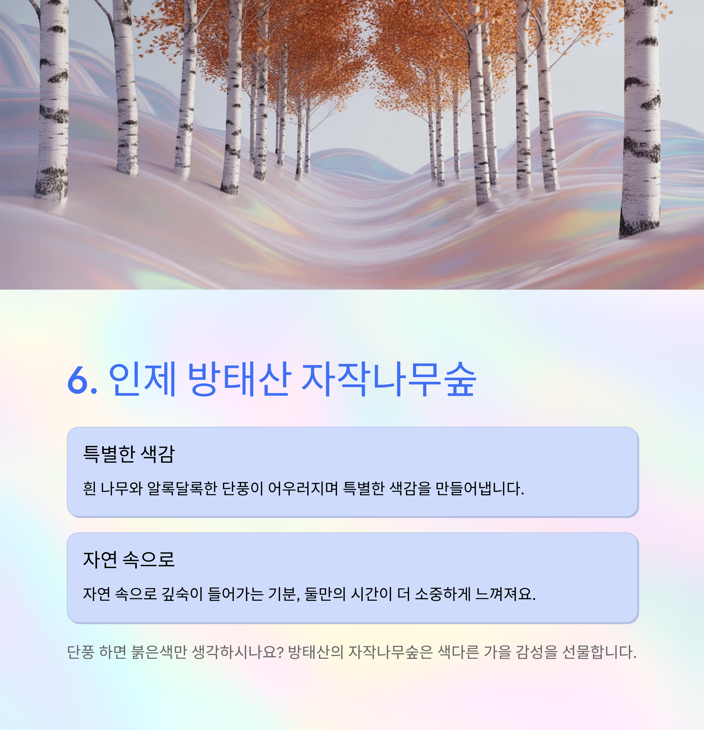 | 강원 | 방태산 자작나무숲 | 색다른 단풍 감성 |