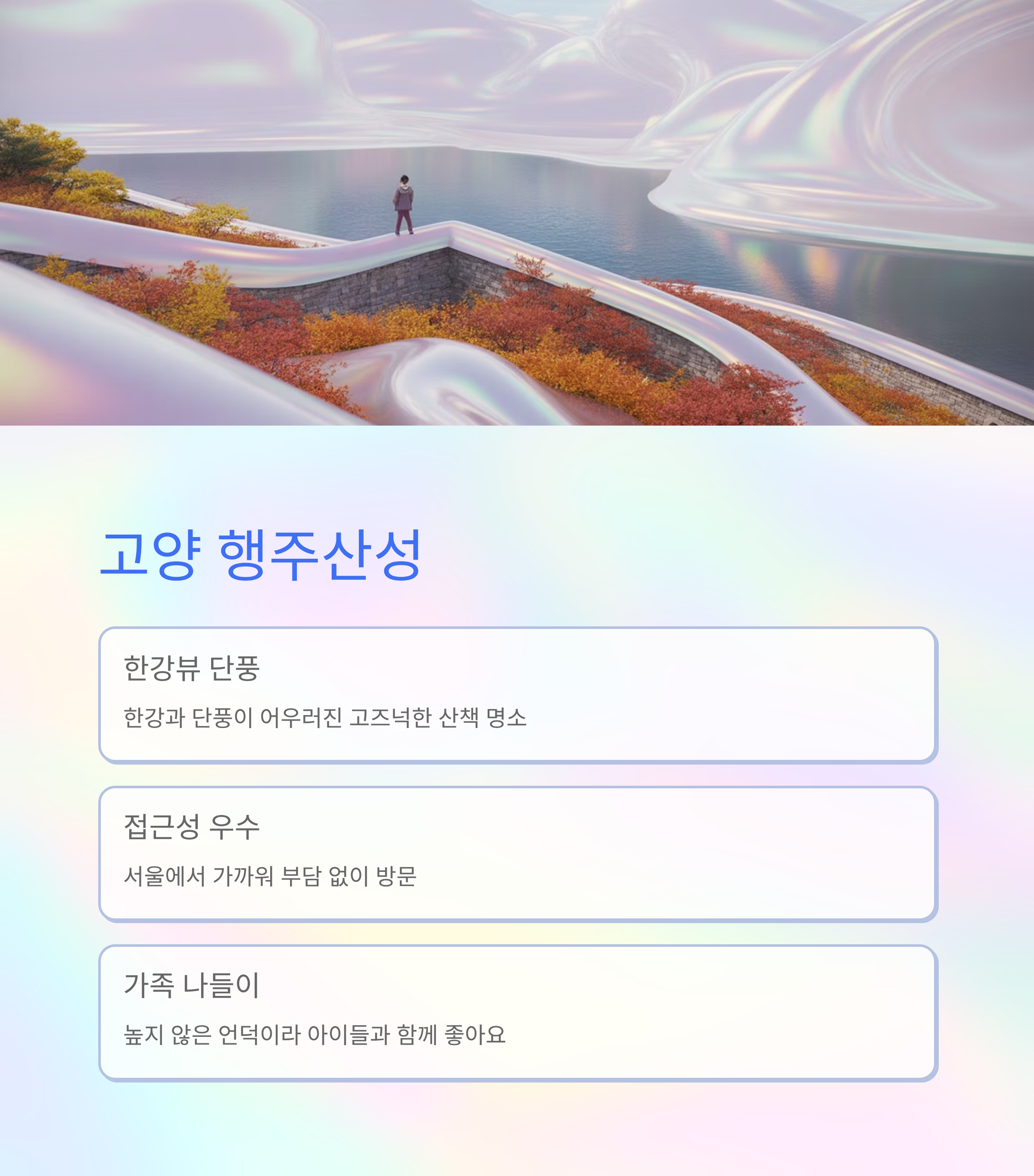 | 경기 고양 | 행주산성 | 한강뷰 단풍 산책 | 약 40분 |