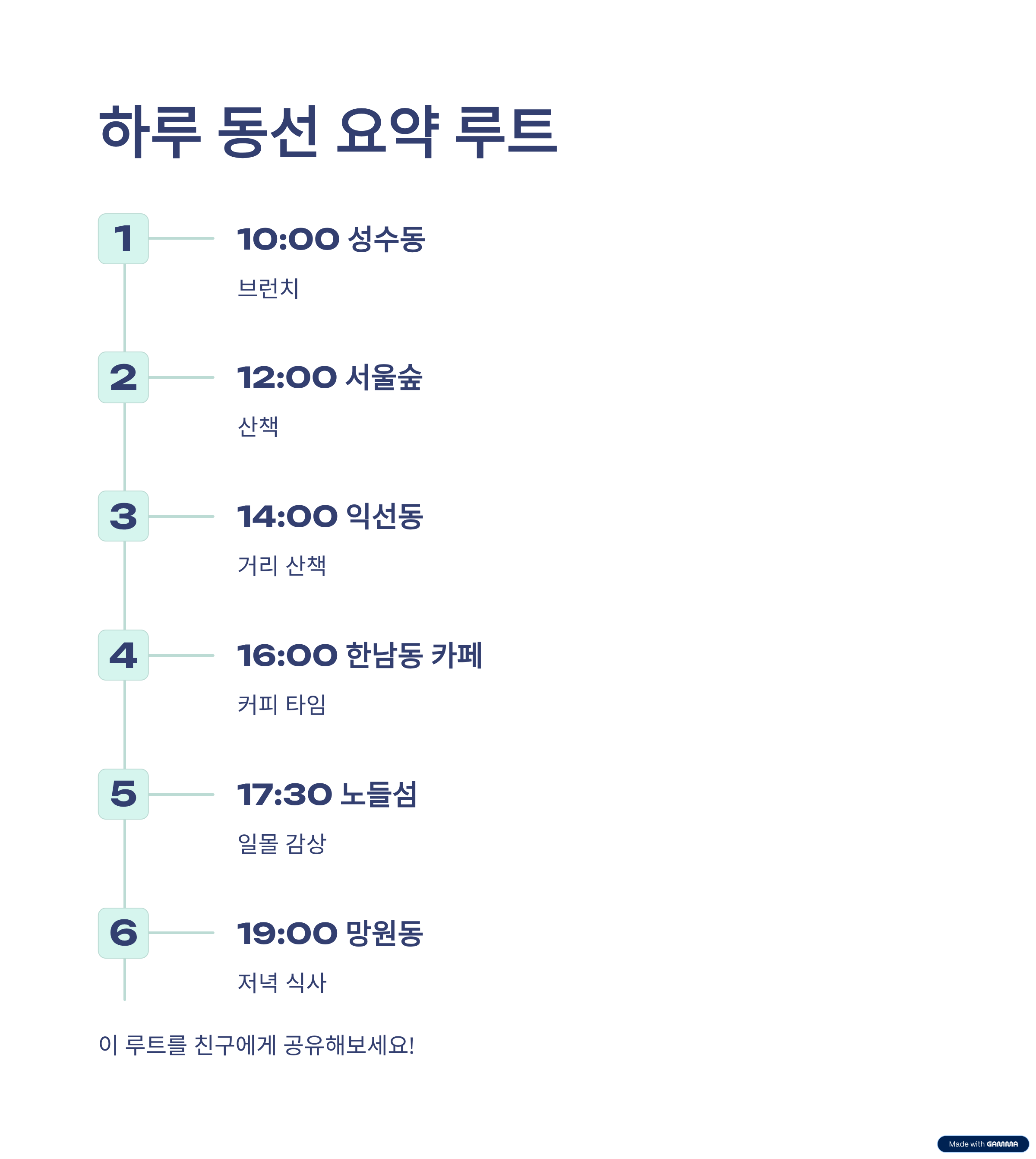 하루 동선 요약 루트 (서울 기준)