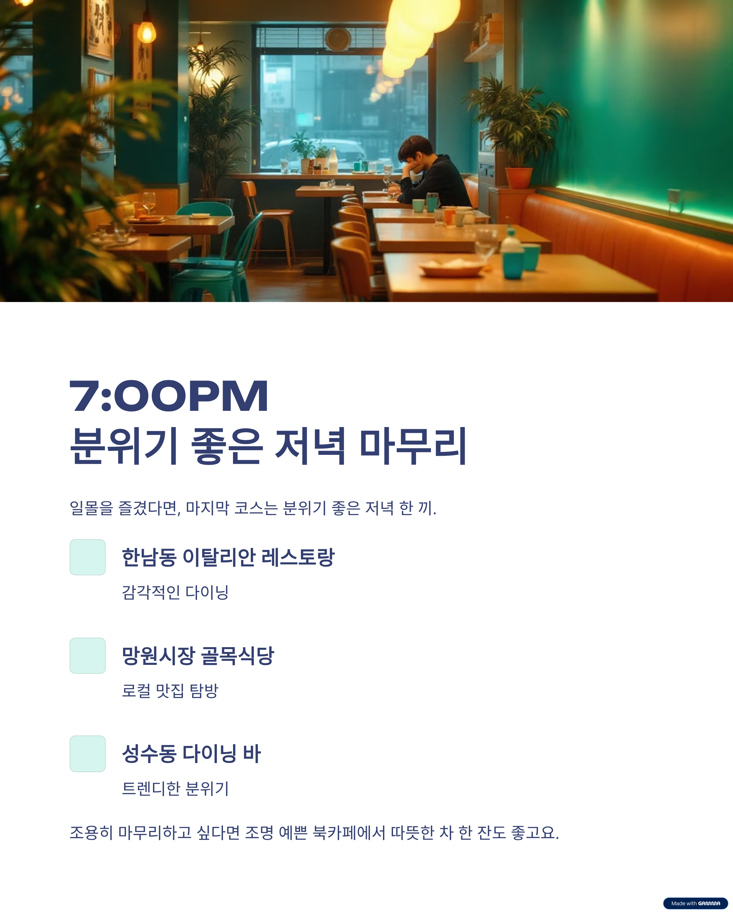 7:00PM, 분위기 좋은 저녁으로 마무리