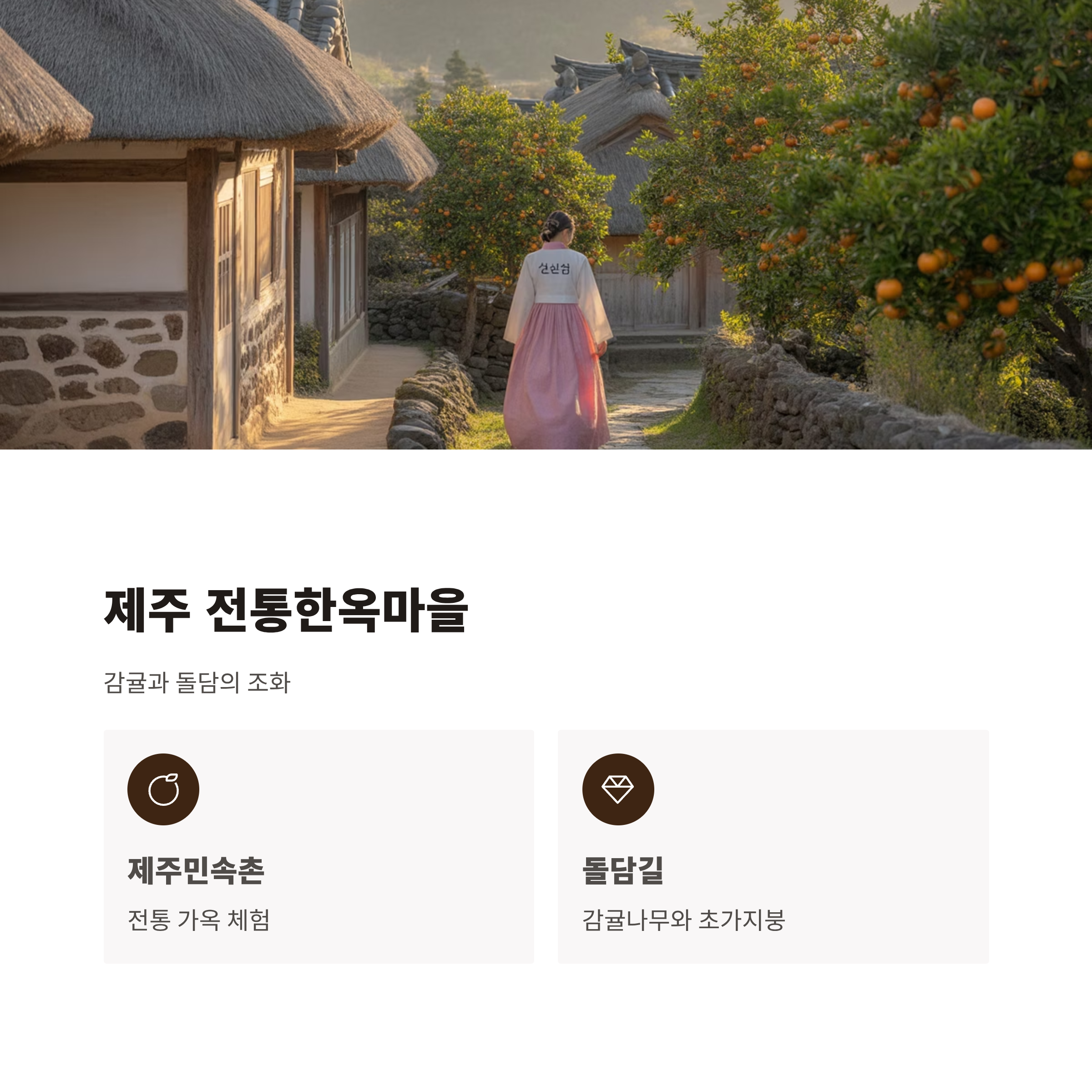 제주 전통한옥마을 – 감귤과 돌담의 조화