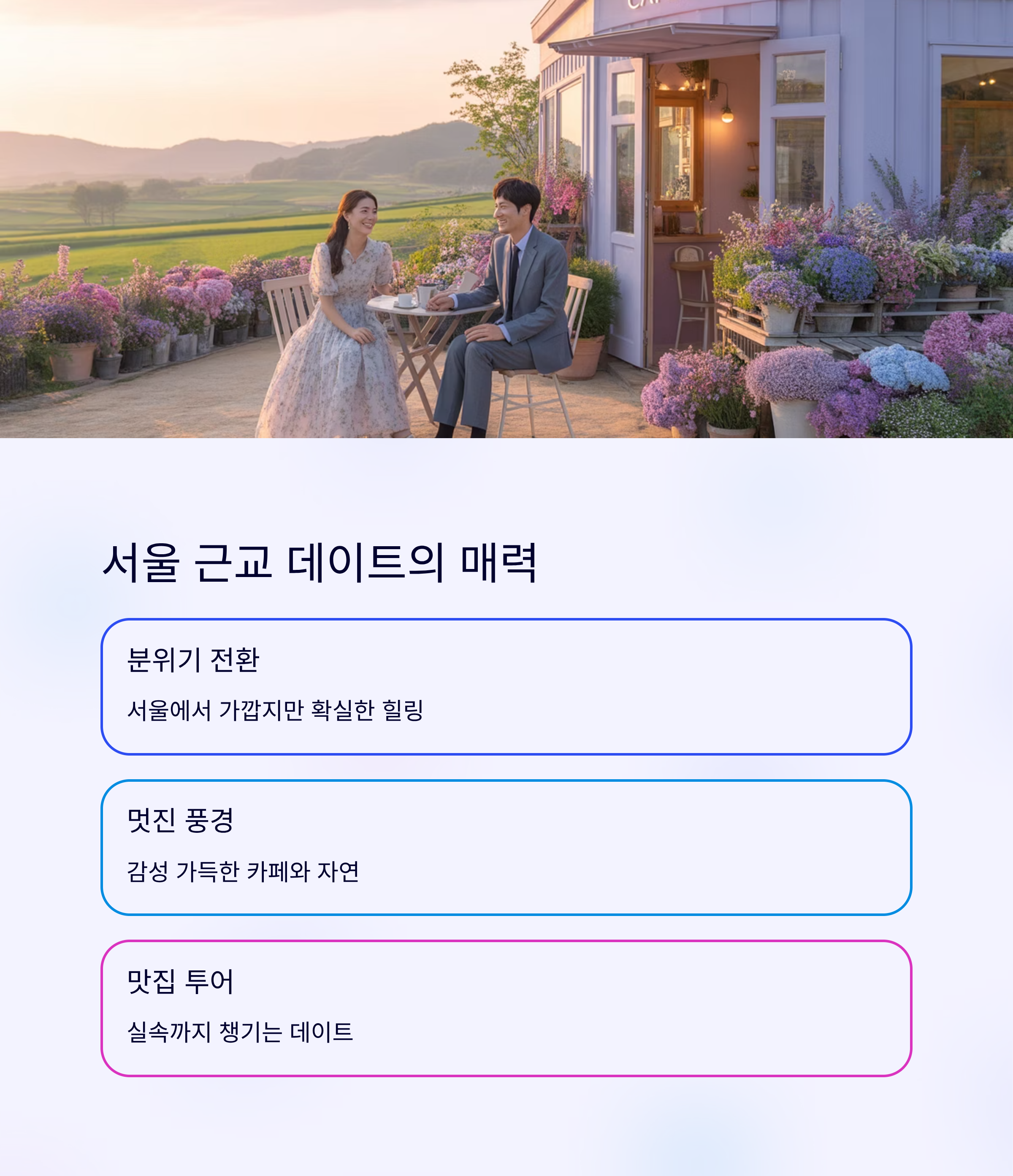 지루할 틈 없는 하루! 커플들이 사랑하는 서울 근교 데이트 명소와 먹거리 코스 완전정복