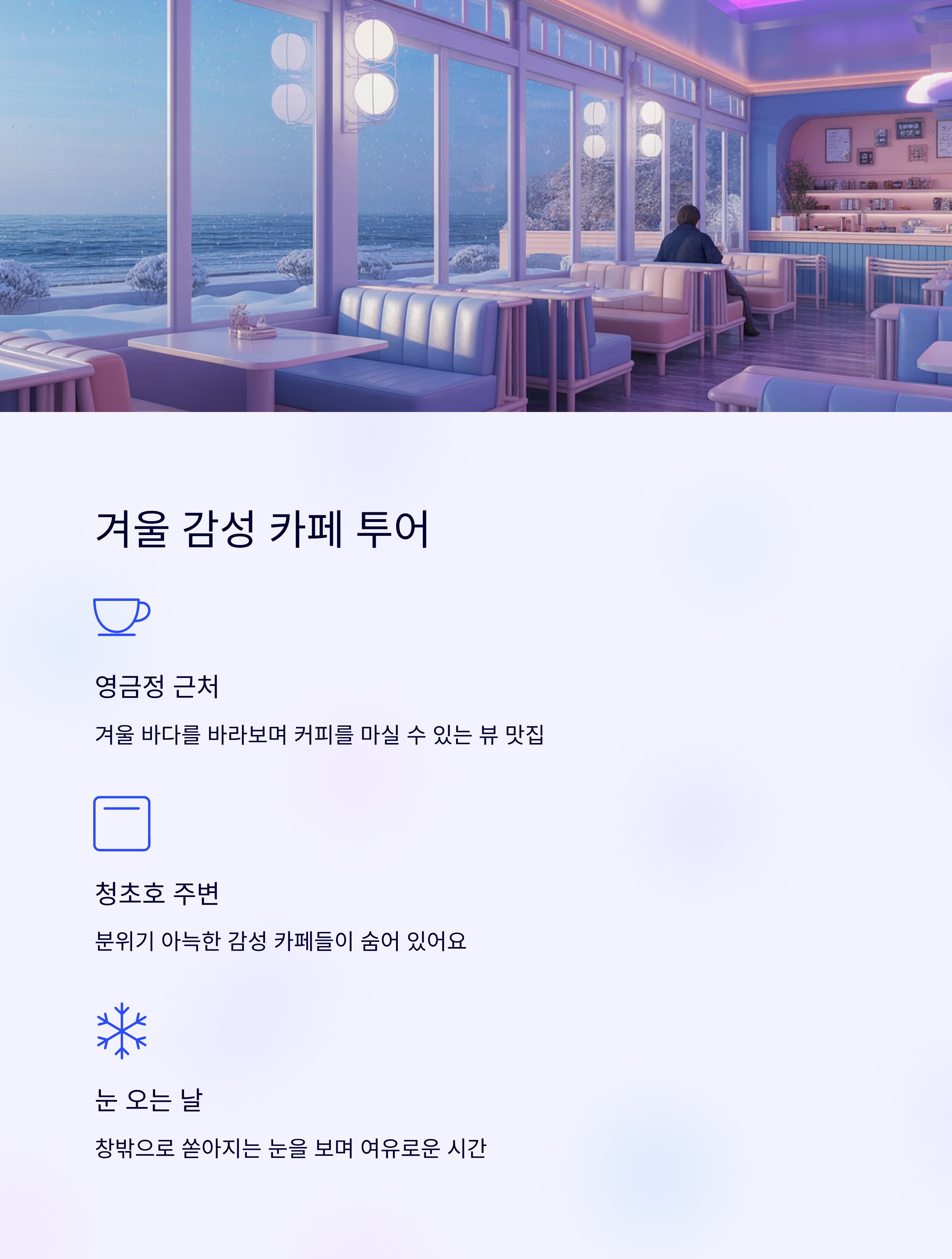 겨울 감성 카페 투어도 빼놓을 수 없죠