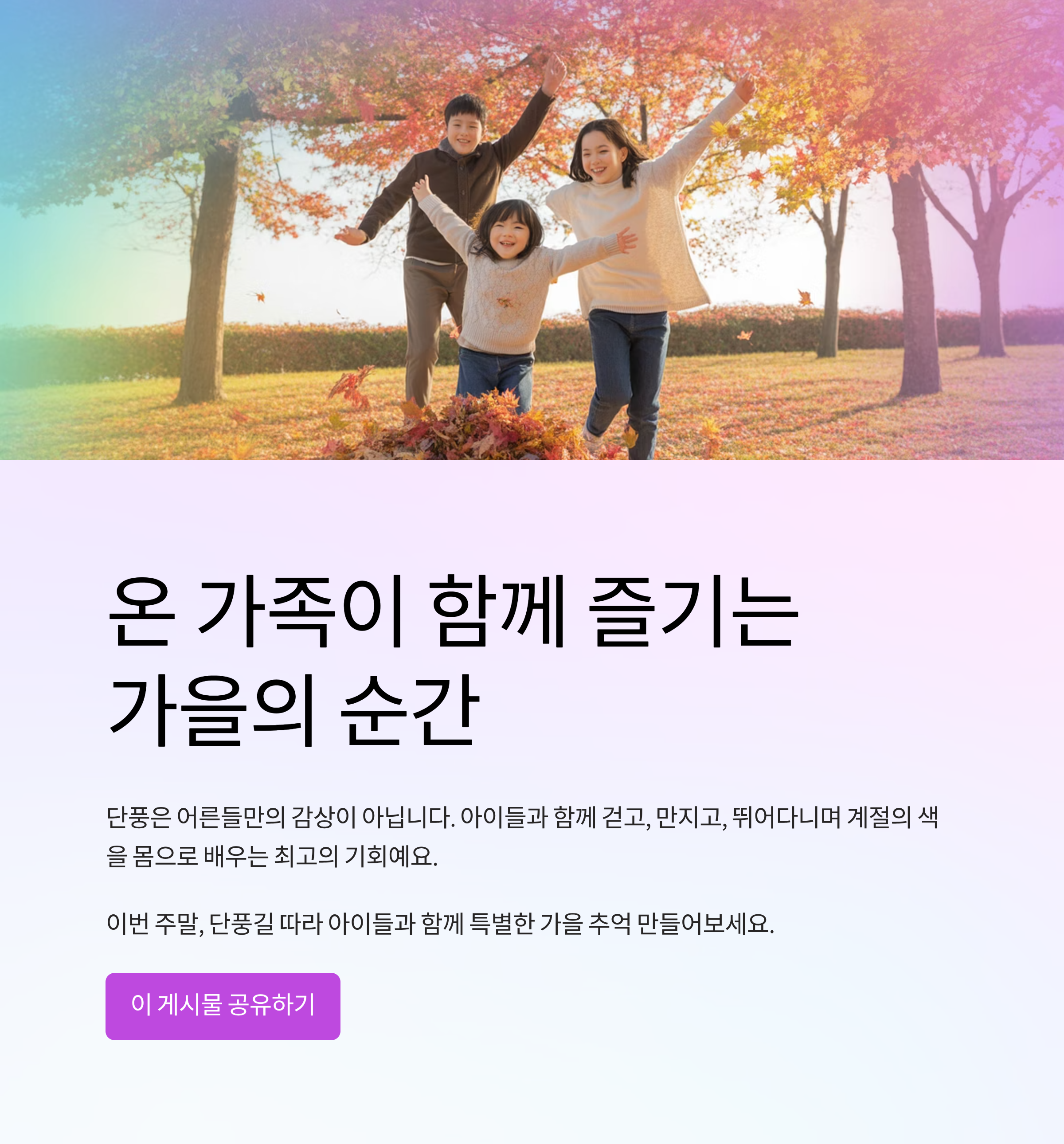 아이들과 함께 특별한 가을 추억 만들어보세요.