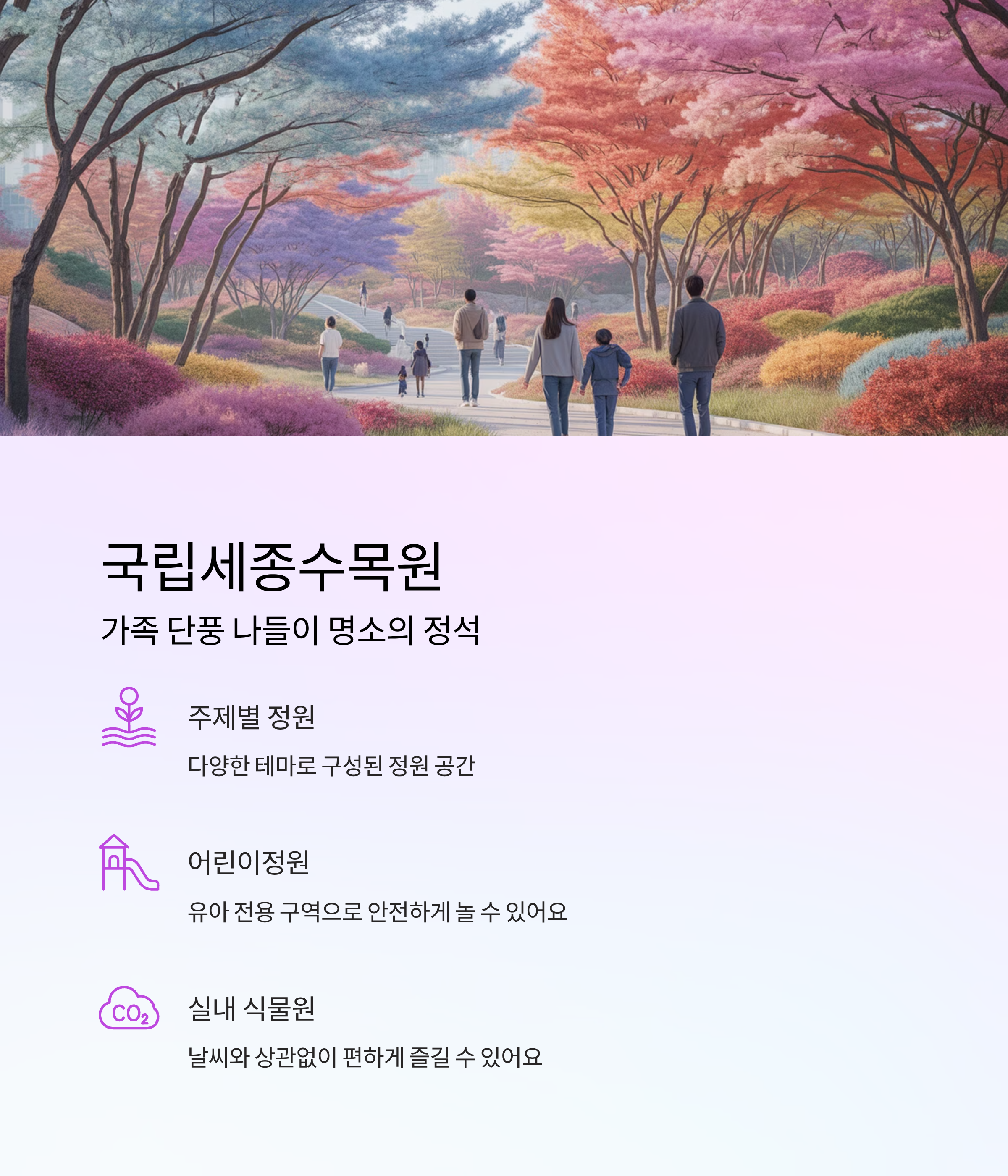 | 국립세종수목원 | 세종시 | 어린이 정원, 실내 식물원 포함 |