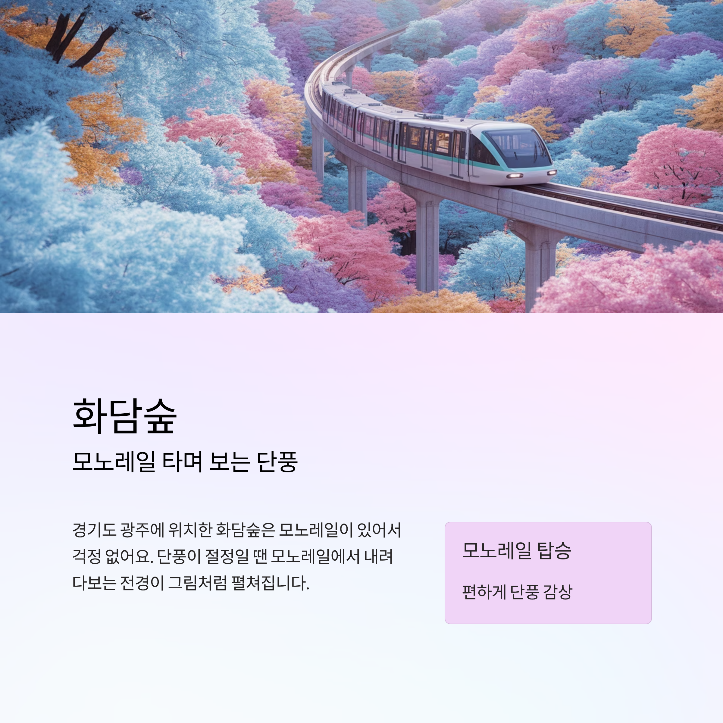 | 화담숲 | 경기 광주 | 모노레일+단풍 감상+유모차 가능 |