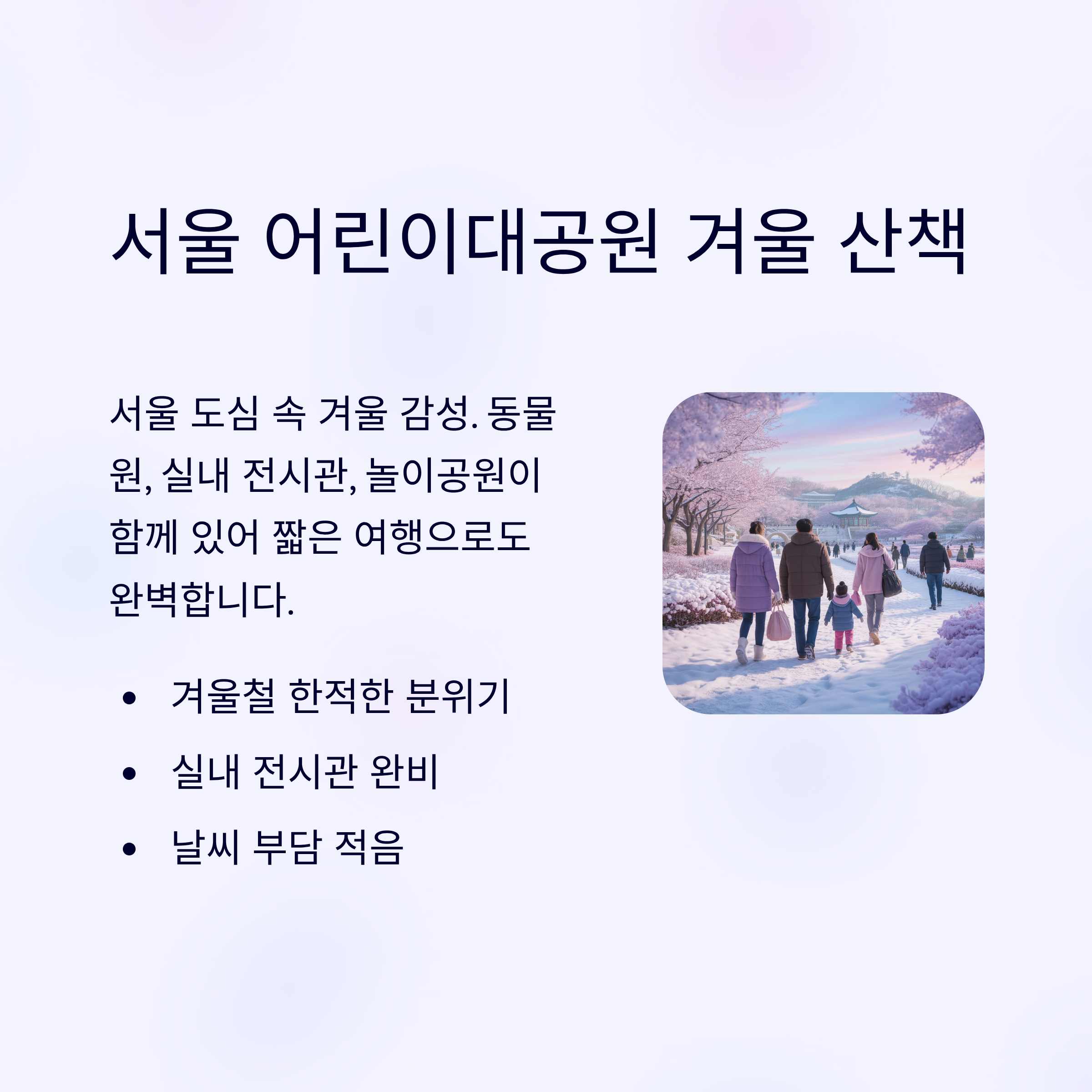 이번 겨울, 가족 모두의 마음이 따뜻해지는 여행을 다녀오시길 바랍니다.