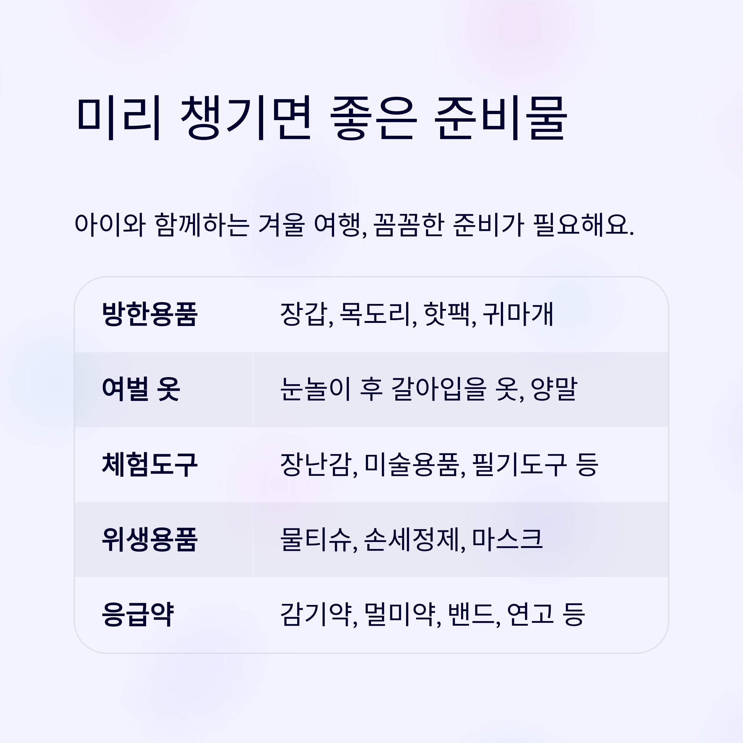 겨울 가족여행, 미리 챙기면 좋은 준비물