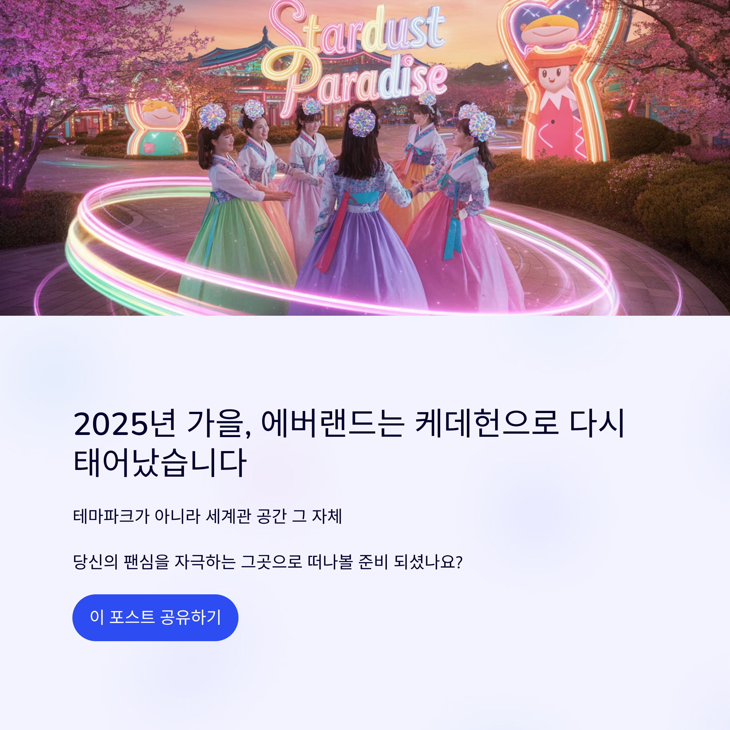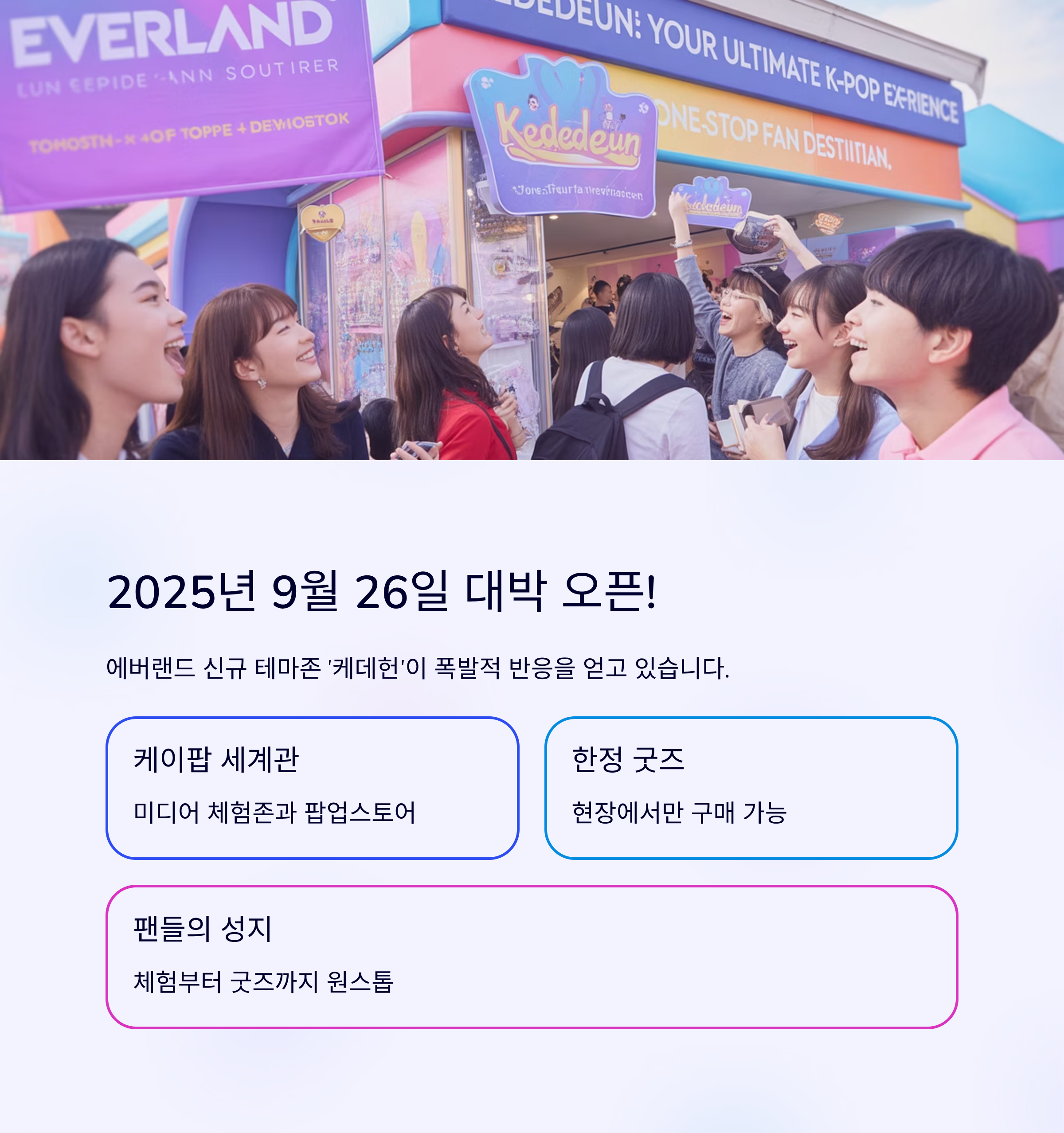 2025년 9월 26일, 에버랜드에 오픈한 신규 테마존 **‘케데헌(KDH) 테마존’**이 폭발적인 반응을 얻고 있습니다.