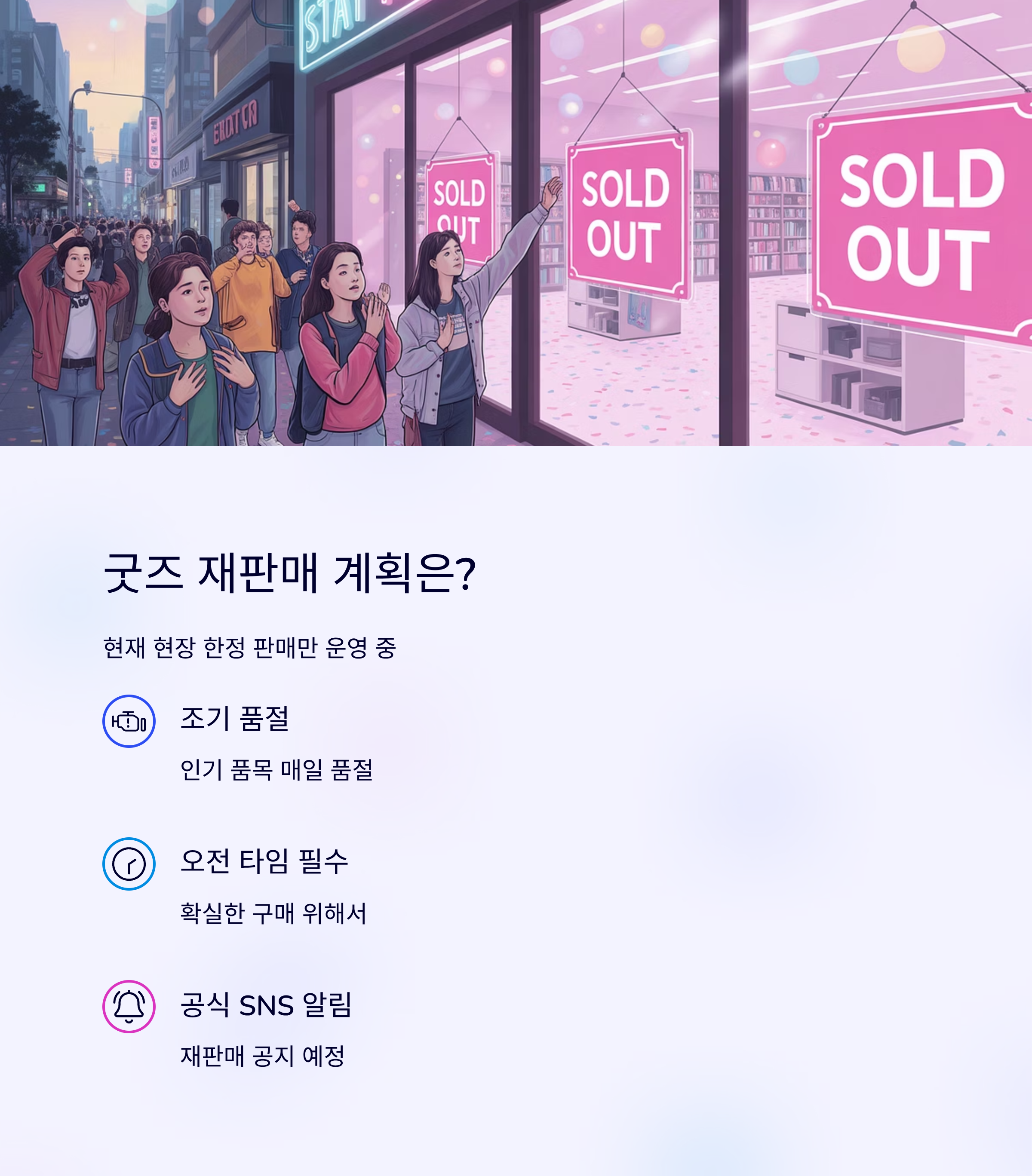 재판매 계획은 공식 SNS를 통해 공지 예정이라고 하니 알림 설정 필수입니다.