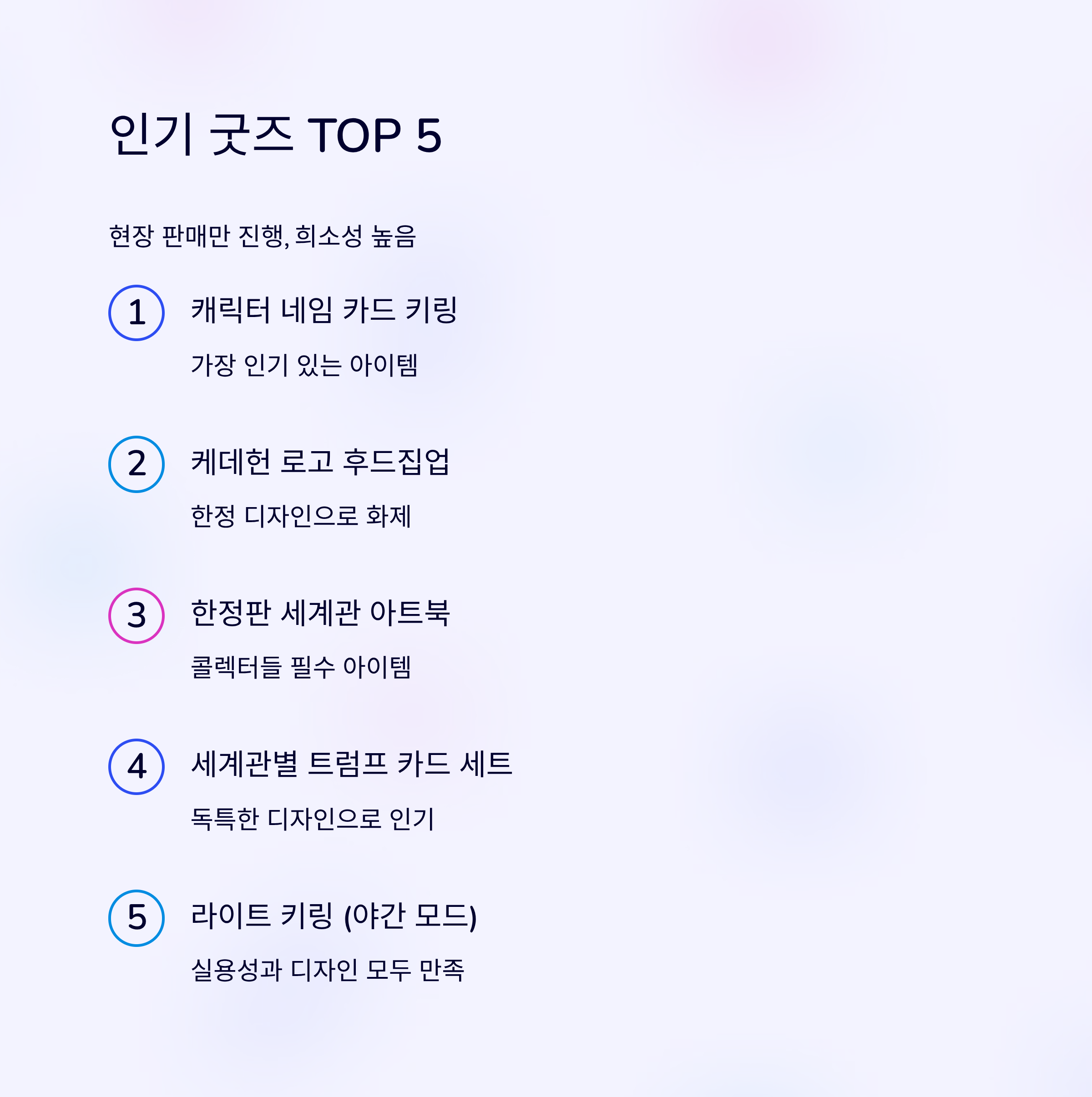 인기 굿즈 TOP5, 뭐가 제일 잘 나가요?