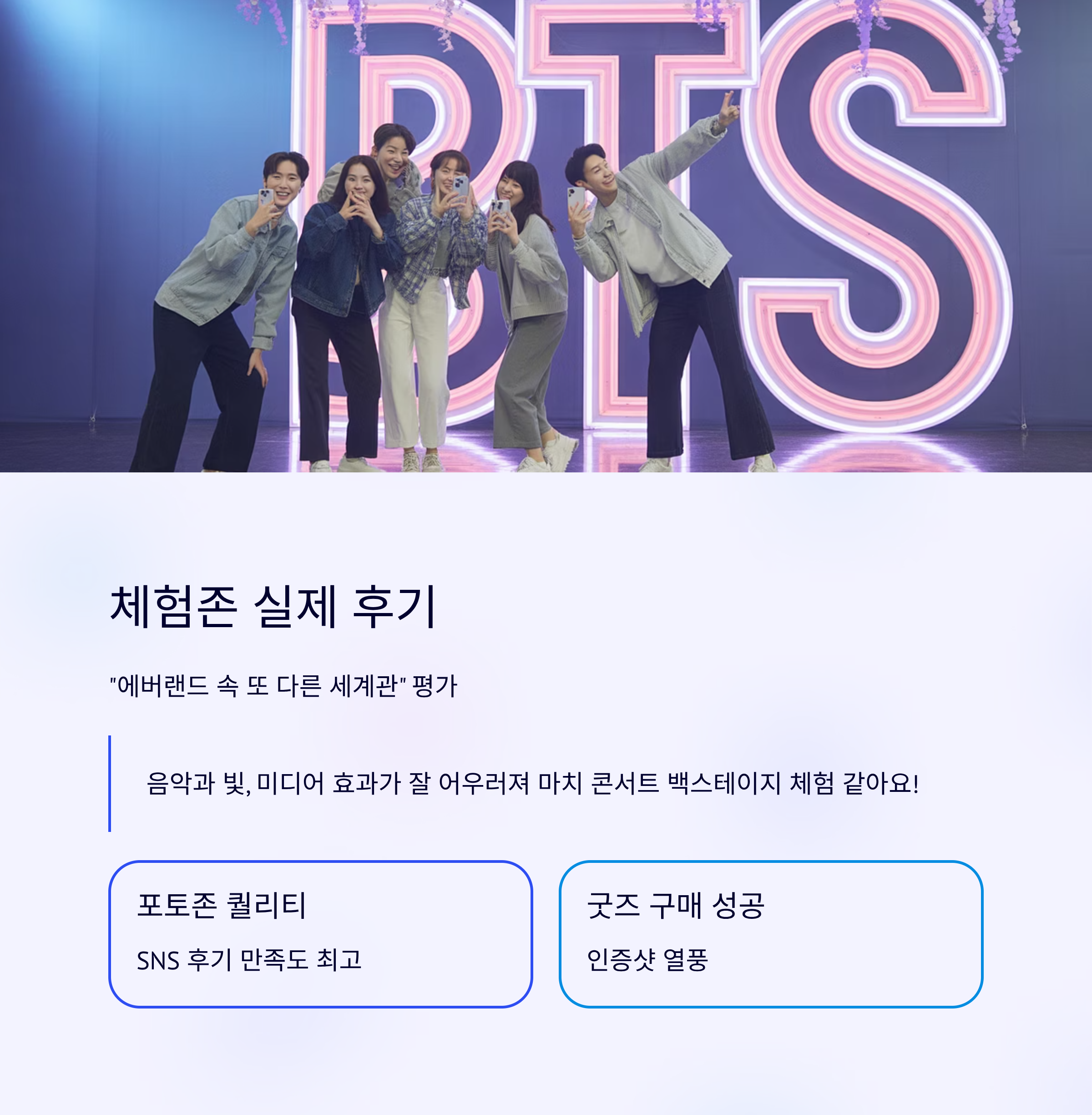 SNS 후기 사진을 보면 대부분 포토존 퀄리티에 대한 만족도가 높았고, 굿즈 구매 성공 후 인증샷도 많았어요.