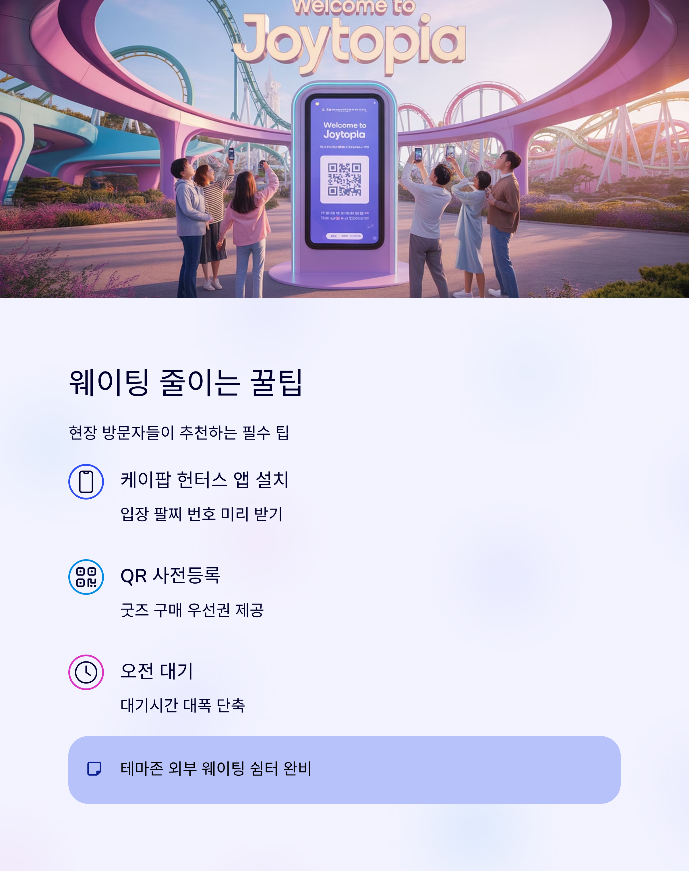 현장 방문자들이 공통으로 추천하는 팁은 케이팝 헌터스 앱 사전 설치와 QR 사전등록입니다.
