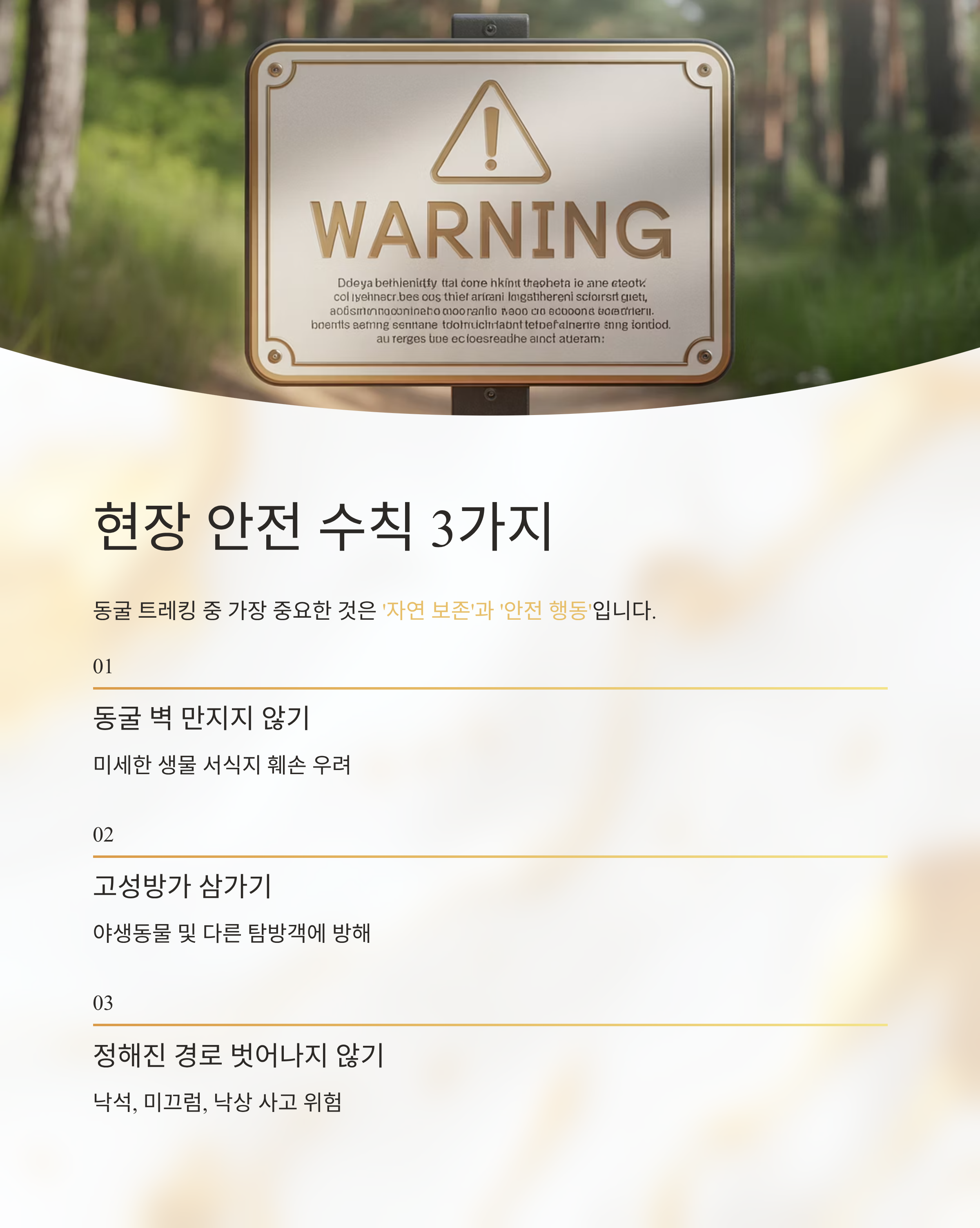 동굴 트레킹 중 가장 중요한 것은 **‘자연 보존’과 ‘안전 행동’**입니다.